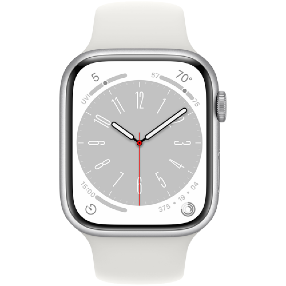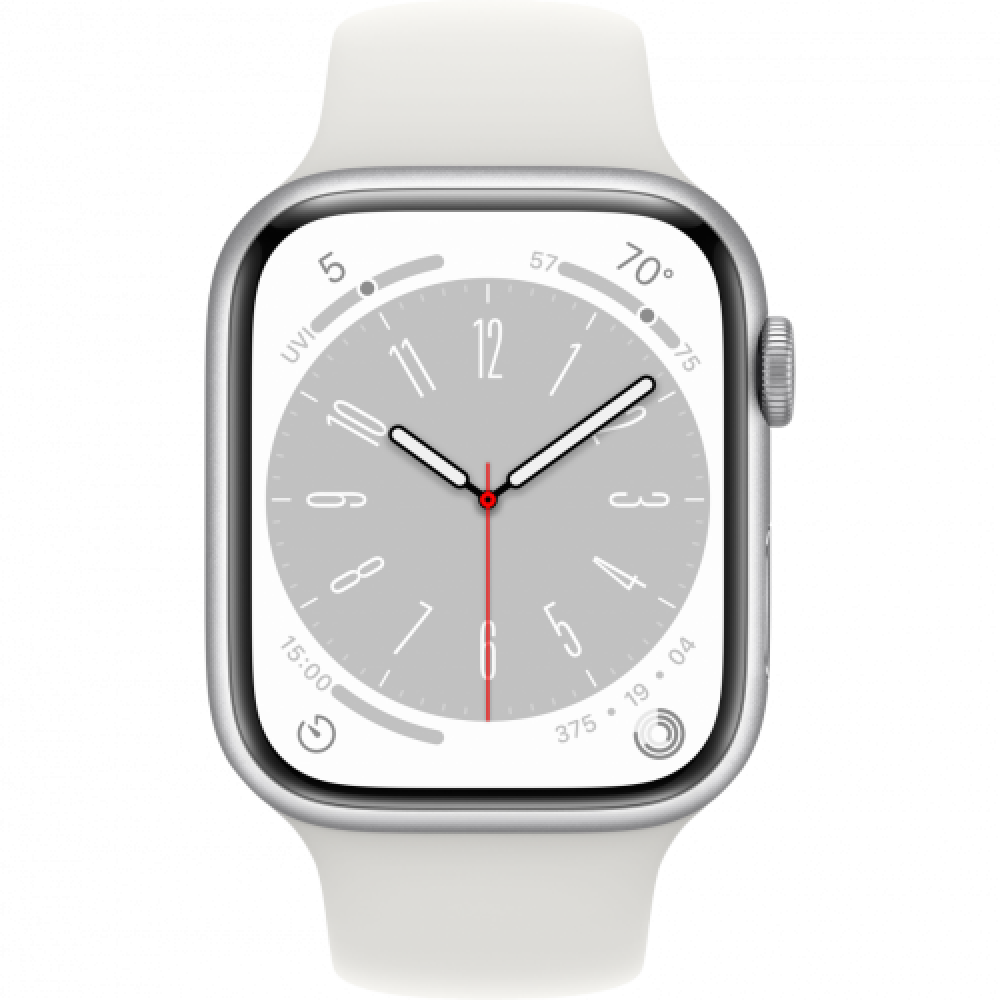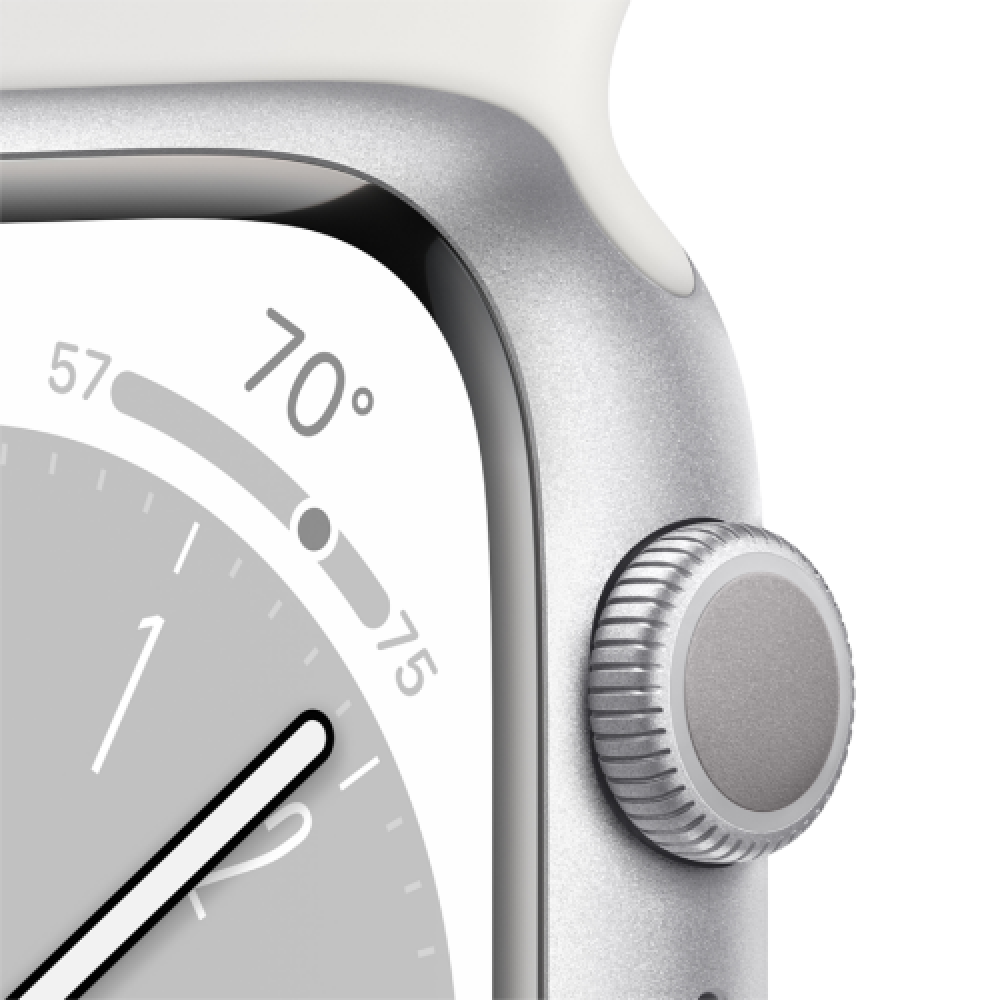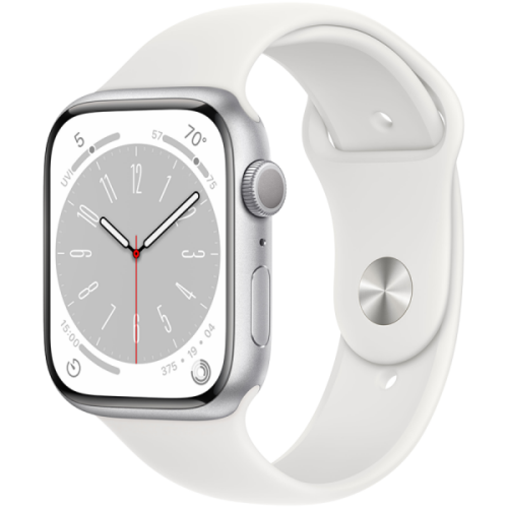 Apple Watch Series 8 GPS 45mm Silver Aluminium Case with White Sport Band - Regular,Model A2771