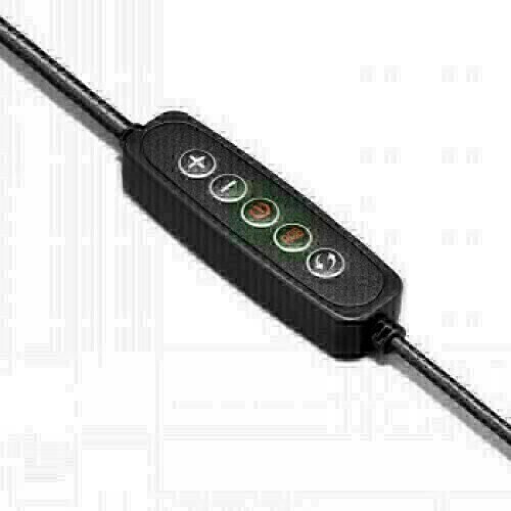 CLICKRINGRGB has a remote control positioned on the USB cable. Through the remote control you can choose and change the light tone of CLICKRINGRGB. This ring light offers 3 different light levels and tones, and many color possibilities, like white, red, blue, yellow and green, and several dynamic light modes.