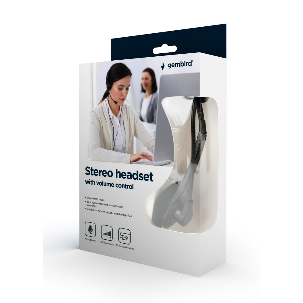 Gembird MHS-123. Product type: Headset. Connectivity technology: Wired. Recommended usage: Calls/Music. Headphone frequency: 20 - 20000 Hz. Cable length: 1.8 m. Weight: 100 g. Product colour: Black