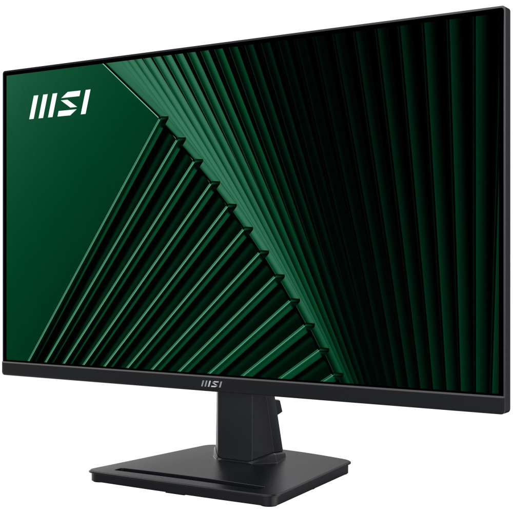 MSI Pro MP245G 24 Inch Monitor, FHD (1920 x 1080), 100Hz, IPS, 1ms, 1x HDMI 1.4b, 1x DP 1.2a output, 1x D-Sub(VGA), Built-in Speakers, Anti-Glare, Anti-Flicker, Less Blue light, TÜV Certified, VESA, Kensington, Black. Display diagonal: 60.5 cm (23.8), Display resolution: 1920 x 1080 pixels, HD type: Full HD, Display technology: LCD, Response time: 4 ms, Native aspect ratio: 16:9, Viewing angle, horizontal: 178°, Viewing angle, vertical: 178°. Built-in speaker(s). VESA mounting. Product colour: Black