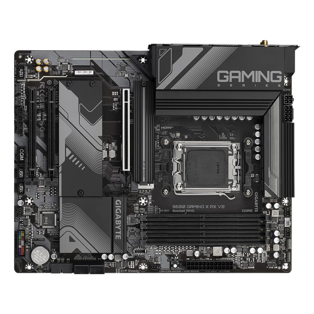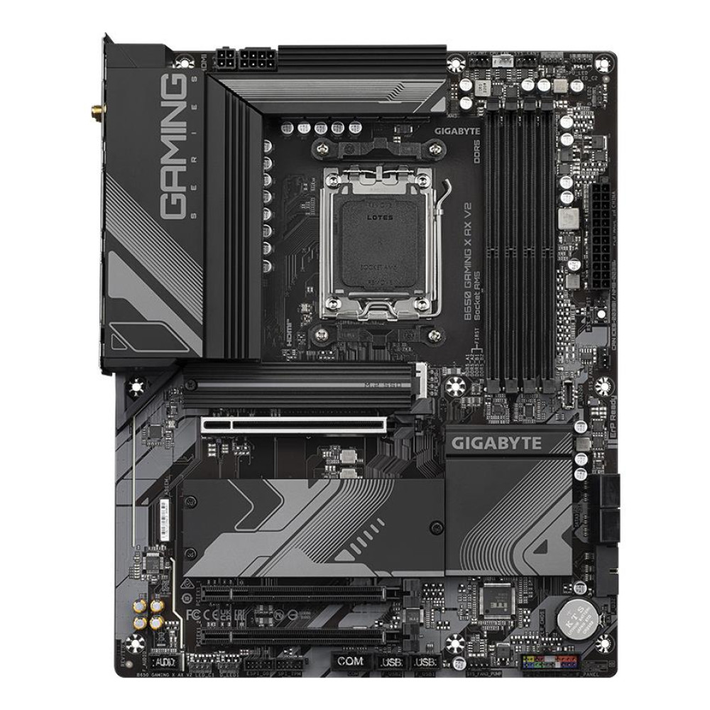 Summary GIGABYTE B650 GAMING X AX V2. Производитель процессора: AMD, Сокет процессора: Socket AM5, Совместимые серии процессоров: AMD Ryzen 7000 Series, AMD Ryzen 8000 Series, AMD Ryzen 9000 Series. Поддерживаемые типы памяти: DDR5-SDRAM, Максимальная внутренняя память: 256 GB, Тип слотов памяти: DIMM. Поддерживаемые интерфейсы носителя: M.2, SATA III, Поддерживаемые типы накопителей: HDD & SSD, Уровни RAID: 0, 1, 10. Максимальное разрешение: 4096 x 2160 пикселей. Тип Ethernet интерфейса: 2.5 Gigabit Ethernet, Контроллер LAN: Realtek RTL8125, Основной стандарт Wi-Fi: Wi-Fi 6E (802.11ax)