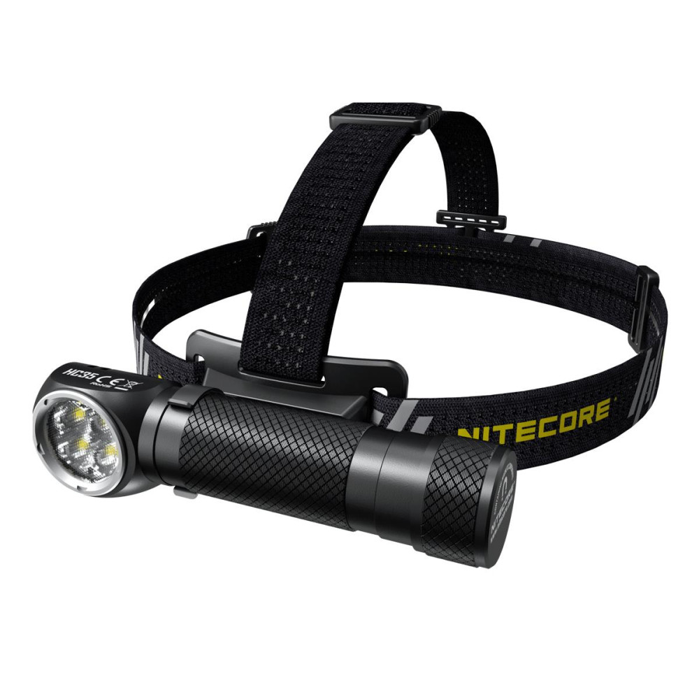 Summary Nitecore HC35. Flashlight type: Headband flashlight, Product colour: Black. Lamp type: LED, Lamps quantity: 4 lamp(s), Luminous flux: 2700 lm. Battery type: 18650/CR123, Battery life (max): 1200 h. Width: 128.2 mm, Weight: 138.5 g