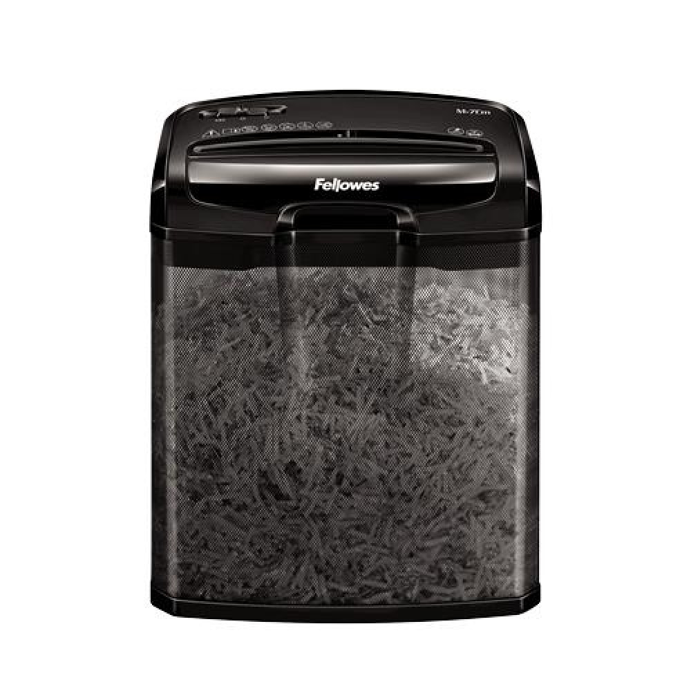 Fellowes M-7Cm. Shredding type: Particle-cut shredding, Shredding size: 4 x 35 mm, Basket volume: 13 L. Width: 320.7 mm, Depth: 185.7 mm, Height: 387.4 mm. Package width: 350.8 mm, Package depth: 209.6 mm, Package height: 368.3 mm