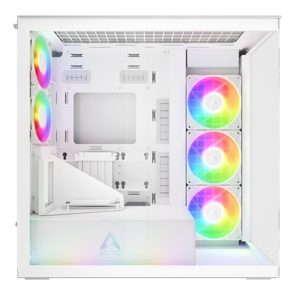ARCTIC Xtender VG (White) Premium E-ATX PC Case with Vertical GPU Mounting. Form factor: Midi Tower, Type: PC, Product colour: White. Power supply location: Bottom, Supported power supply form factors: ATX. Side fans installed: 3x 140 mm, Side fans diameters supported: 120,140 mm, Rear fans installed: 2x 120 mm. Supported HDD sizes: 2.5,3.5. Width: 231 mm, Depth: 529 mm, Height: 529 mm