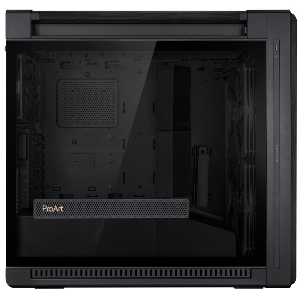 Case, ASUS, ProArt PA602 Wood Edition - Tempered Glass Panel, MidiTower, Case product features Transparent panel, ATX, EATX, MicroATX, MiniDTX, MiniITX, Colour Black, PROARTPA602WOODTGPWM