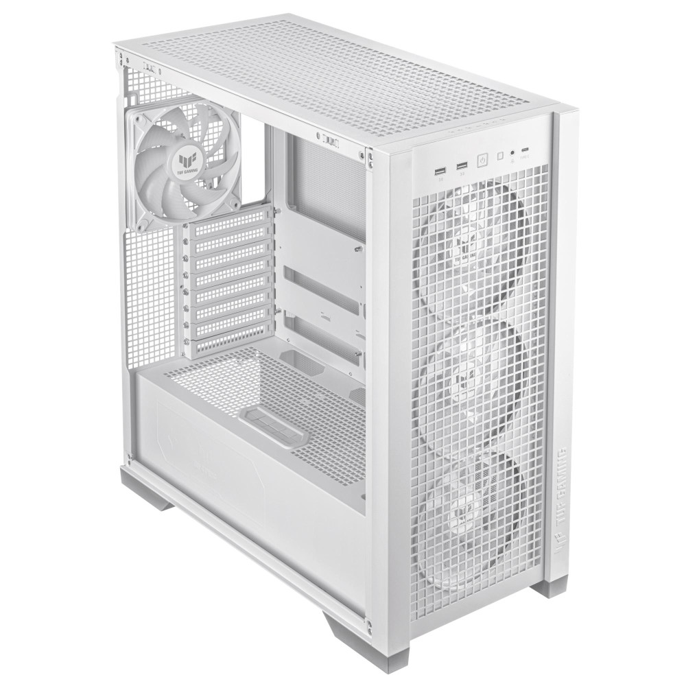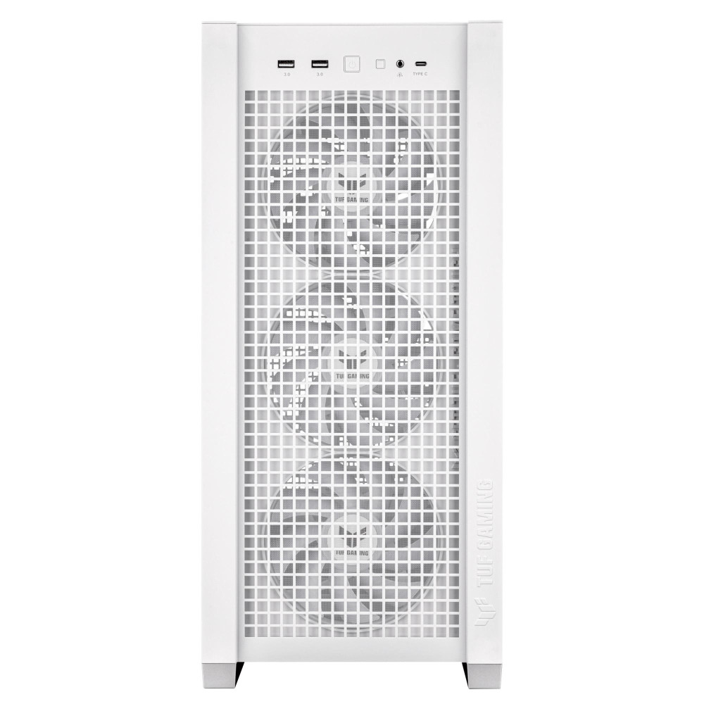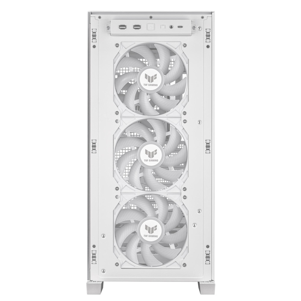 ASUS TUF Gaming GT302 ARGB. Form factor: Midi Tower, Type: PC, Product colour: White. Power supply location: Bottom. Front fans installed: 3x 140 mm, Front fans diameters supported: 140 mm, Rear fans installed: 1x 140 mm. Supported HDD sizes: 2.5,3.5. Width: 235 mm, Depth: 485 mm, Height: 520 mm