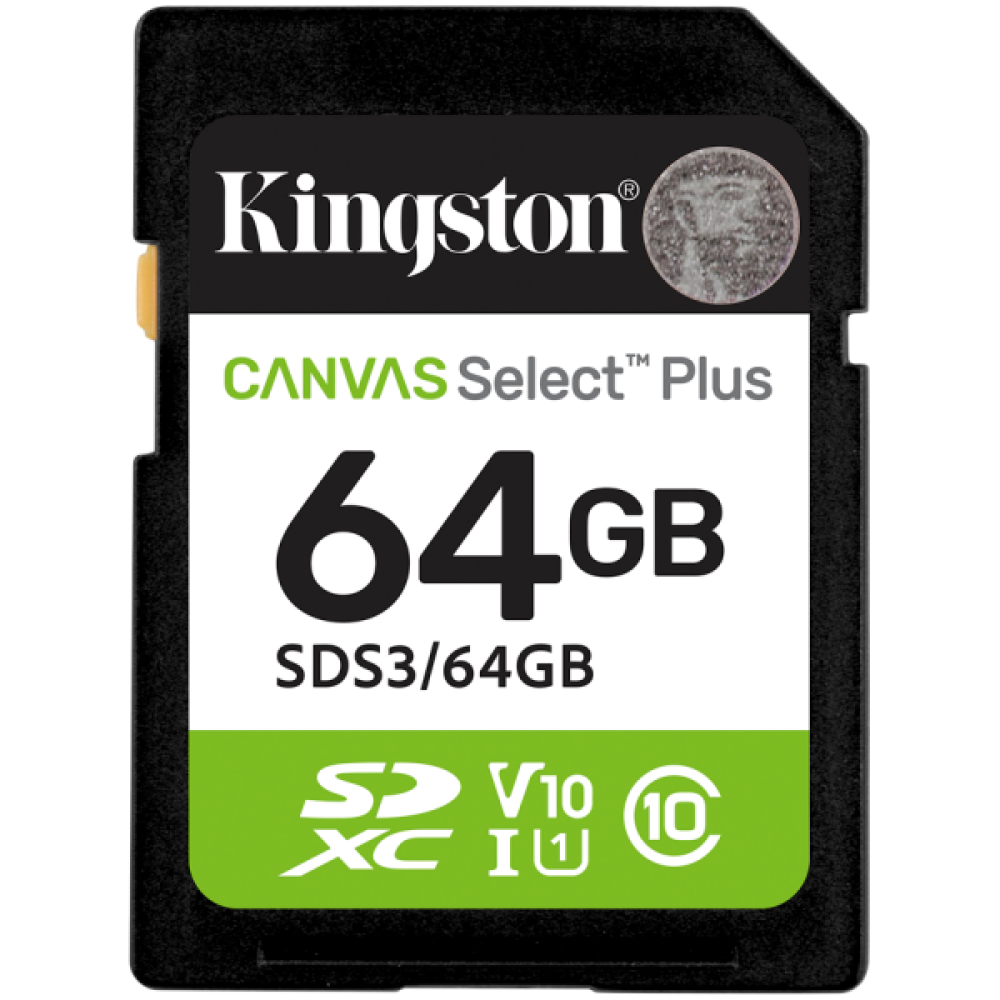 Kingston 64GB SDXC Canvas Select Plus Gen3 100MB/s C10 UHS-I U1 V10