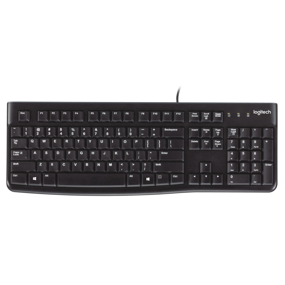 Logitech K120 Corded Keyboard. Keyboard form factor: Full-size (100%). Keyboard style: Straight. Connectivity technology: Wired, Device interface: USB, Keyboard layout: QWERTY. Cable length: 1.5 m. Recommended usage: Office. Product colour: Black
