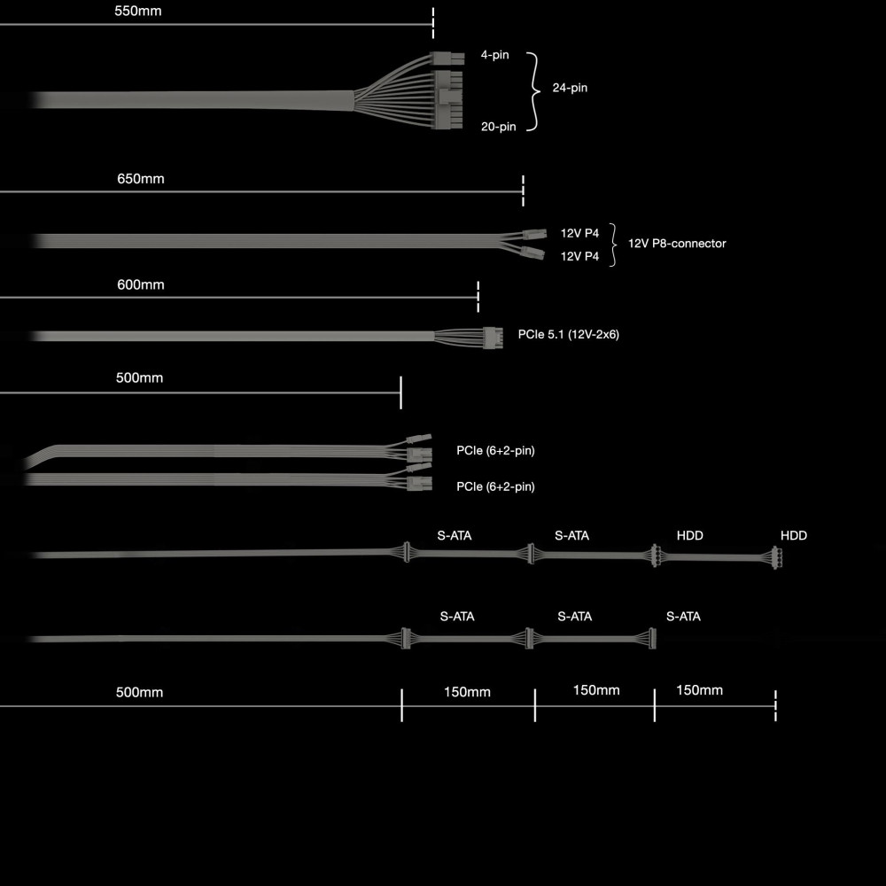 AC,CPU,PCIe,Peripheral (Molex),SATA