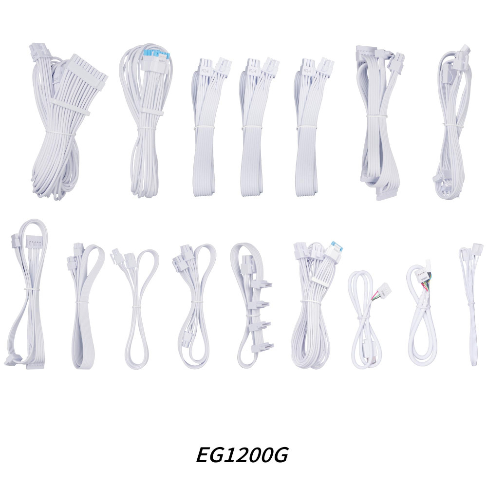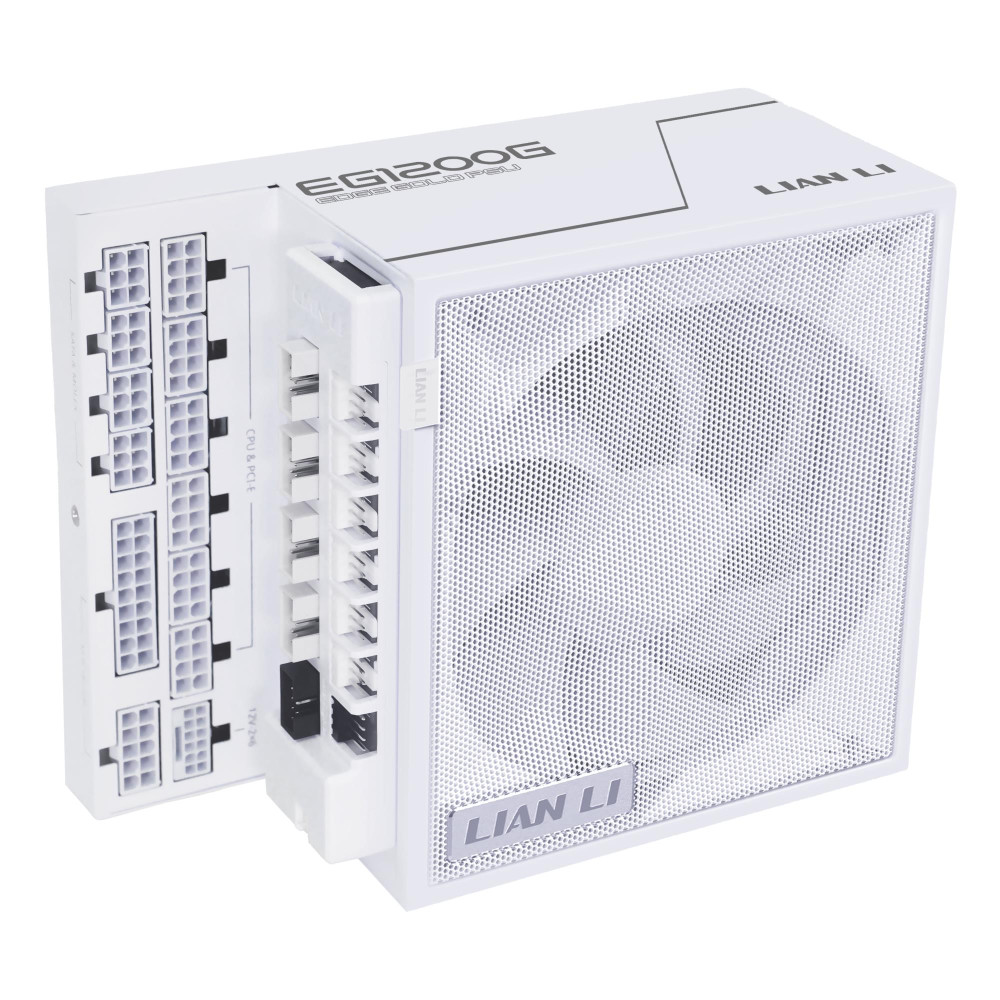 Lian Li EG1200G. Total power: 1200 W, AC input voltage: 100 - 240 V, AC input frequency: 50/60 Hz. Motherboard power connector: 24-pin ATX, Motherboard power cable length: 62 cm, SATA power cable length: 300,400 mm. Purpose: PC, Power supply unit (PSU) form factor: SFX, 80 PLUS certification: 80 PLUS Gold. Product colour: White, Fan diameter: 12 cm. Cables included: CPU, PCIe, Peripheral (Molex), SATA
