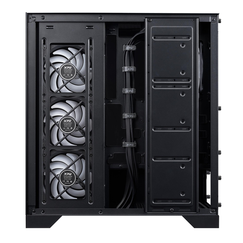 XPG Invader X BTF. Формат: Midi Tower, Тип: ПК, Цвет товара: Черный. Поддерживаемые диаметры вентиляторов (боковая панель): 120 mm, Поддерживаемые диаметры вентиляторов (задняя панель): 120,140 mm, Поддерживаемые диаметры вентиляторов (верхняя панель): 120,140 mm. Поддерживаемые размеры жесткого диска: 3.5, форм-фактор тевродотельного диска: 2.5. Ширина: 245 mm, Глубина: 448 mm, Высота: 485 mm. Масса брутто: 10,2 kg
