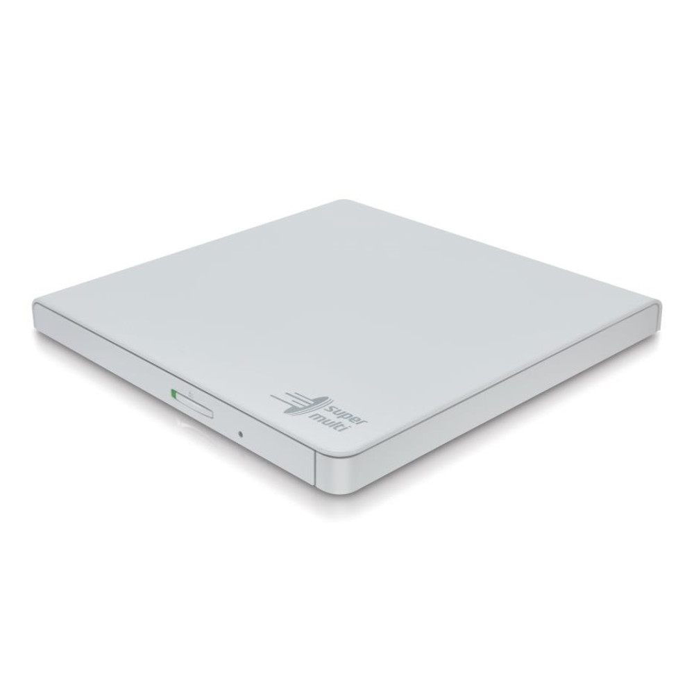 Hitachi-LG Slim Portable DVD-Writer. Цвет товара: Белый, Механизм загрузки диска: Выдвижной лоток. Предназначение: Настольный компьютер/ноутбук, Тип оптического привода: DVD±RW, Интерфейс: USB 2.0. Скорость записи CD: 24x, Скорость записи DVD+R: 8x, Скорость записи DVD-R: 8x. Поддерживаемые операционные системы Windows: Windows 10. Ширина: 141 mm, Глубина: 136,5 mm, Высота: 14 mm