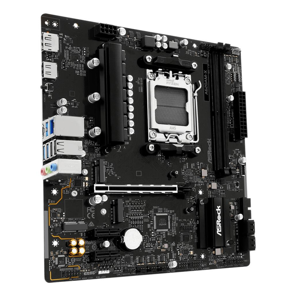 Summary Asrock A620AM-X. Processor manufacturer: AMD, Processor socket: Socket AM5, Compatible processor series: AMD Ryzen 7000 Series, AMD Ryzen 8000 Series, AMD Ryzen 9000 Series. Supported memory types: DDR5-SDRAM, Maximum internal memory: 128 GB, Memory slots type: DIMM. Supported storage drive interfaces: M.2, NVMe, SATA III, Supported storage drive types: HDD & SSD, RAID levels: 0, 1, 10. Graphics card family: AMD, Graphics card: AMD RDNA 2, Maximum resolution: 3840 x 2160 pixels. Ethernet interface type: 2.5 Gigabit Ethernet, Fast Ethernet, Gigabit Ethernet, LAN controller: Dragon RTL8125BG