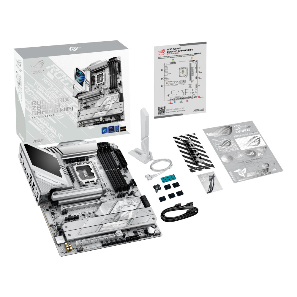 ASUS ROG STRIX Z890-A GAMING WIFI. Производитель процессора: Intel, Сокет процессора: LGA 1851 (Socket V1), Совместимые серии процессоров: Intel Core Ultra (Series 2). Поддерживаемые типы памяти: DDR5-SDRAM, Максимальная внутренняя память: 192 GB, Тип слотов памяти: DIMM. Поддерживаемые интерфейсы носителя: M.2, SATA III, Поддерживаемые типы накопителей: HDD & SSD, Уровни RAID: 0, 1, 5, 10. Тип Ethernet интерфейса: 2.5 Gigabit Ethernet, Основной стандарт Wi-Fi: Wi-Fi 7 (802.11be), Wi-Fi стандартов: 802.11a, 802.11b, 802.11g, Wi-Fi 4 (802.11n), Wi-Fi 5 (802.11ac), Wi-Fi 6 (802.11ax), Wi-Fi 6E.... Комплектующие для: ПК, Формат материнской платы: ATX, Семейство чипсета материнской платы: Intel