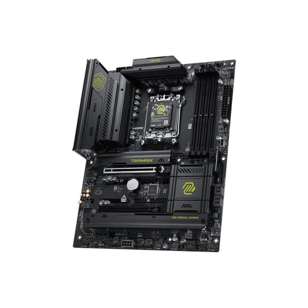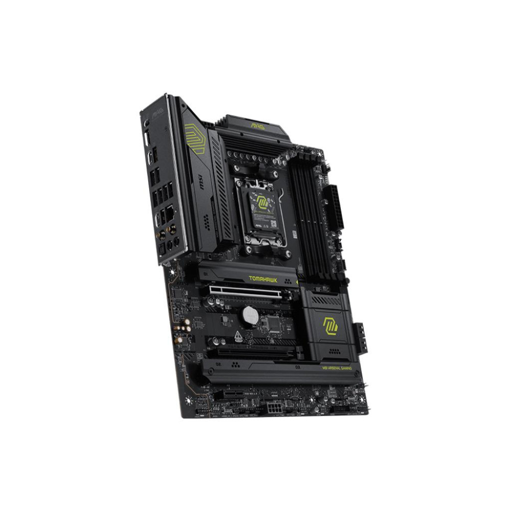 MSI MAG B850 TOMAHAWK WIFI. Processor manufacturer: AMD, Processor socket: Socket AM5, Compatible processor series: AMD Ryzen 7000 Series, AMD Ryzen 8000 Series, AMD Ryzen 9000 Series. Supported memory types: DDR5-SDRAM, Maximum internal memory: 256 GB, Memory slots type: DIMM. Supported storage drive interfaces: M.2, Micro SATA III, Supported storage drive types: HDD & SSD, RAID levels: 0, 1, 10. Ethernet interface type: 5 Gigabit Ethernet, Top Wi-Fi standard: Wi-Fi 7 (802.11be), Wi-Fi standards: 802.11a, 802.11b, 802.11g, Wi-Fi 4 (802.11n), Wi-Fi 5 (802.11ac), Wi-Fi 6 (802.11ax), Wi-Fi 6E.... Component for: PC, Motherboard form factor: ATX, Motherboard chipset family: AMD