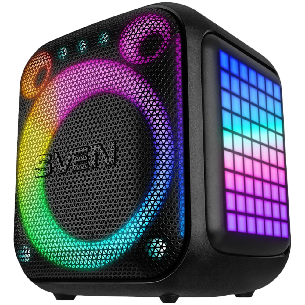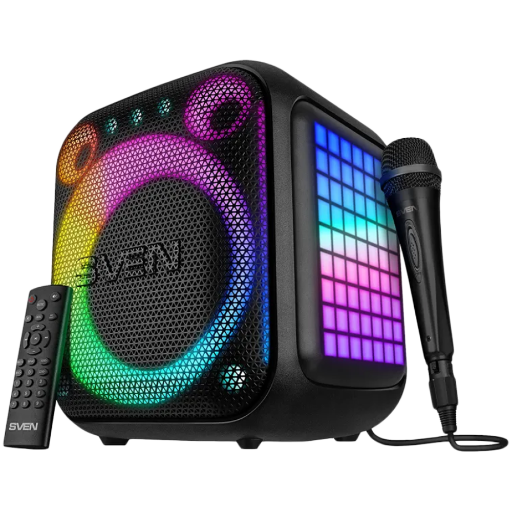 Portable speaker SVEN PS-880, black, power output 110W (RMS), TWS, Bluetooth, FM, USB, microSD, LED-display, lithium battery