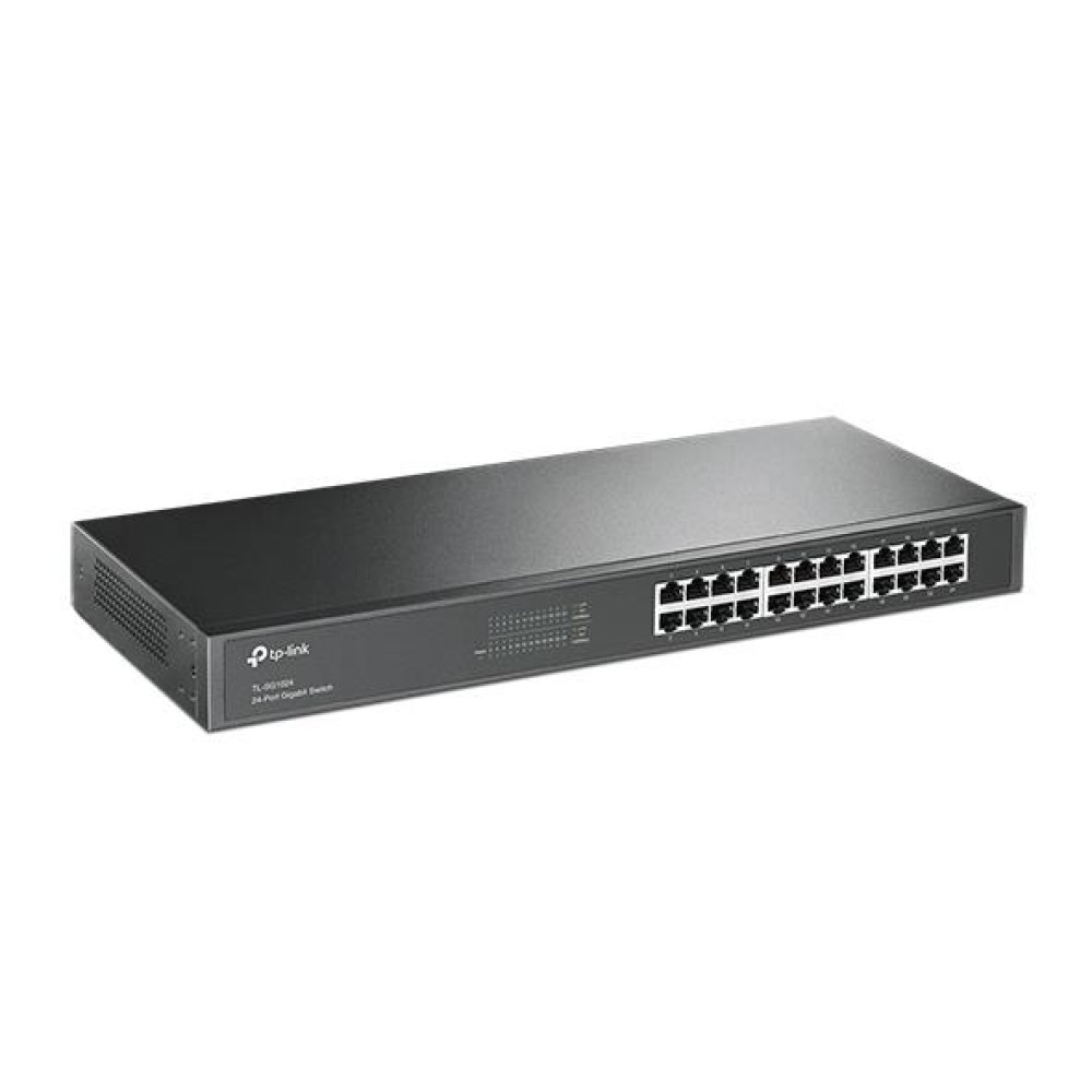 TP-Link 24-Port Gigabit Rackmount Network Switch. Switch type: Unmanaged. Basic switching RJ-45 Ethernet ports type: Gigabit Ethernet (10/100/1000), Basic switching RJ-45 Ethernet ports quantity: 24. Full duplex. MAC address table: 8000 entries, Switching capacity: 48 Gbit/s. Networking standards: IEEE 802.3ab, IEEE 802.3i, IEEE 802.3u, IEEE 802.3x. Rack mounting, Form factor: 1U