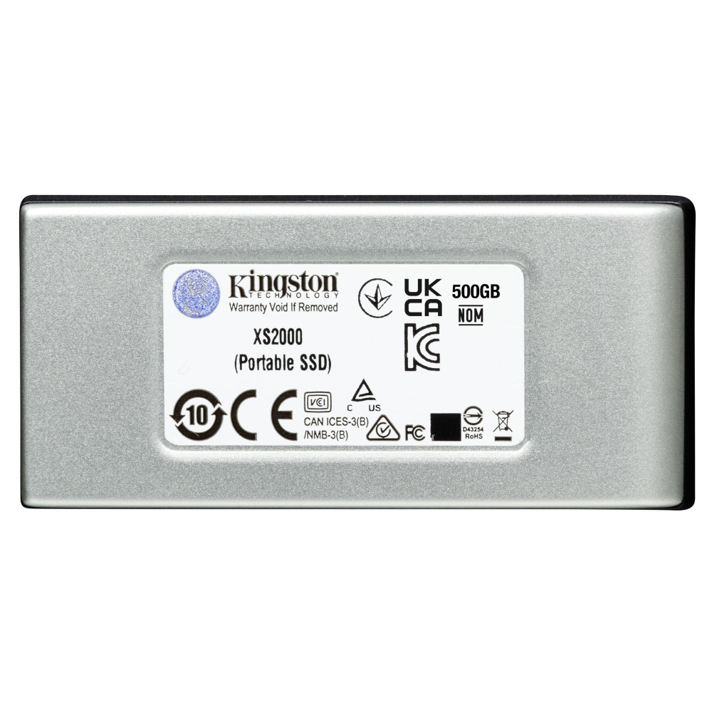 Kingston Technology 500G PORTABLE SSD XS2000. SSD capacity: 500 GB. USB connector: USB Type-C, USB version: 3.2 Gen 2 (3.1 Gen 2). Read speed: 2000 MB/s, Write speed: 2000 MB/s. Product colour: Black, Silver