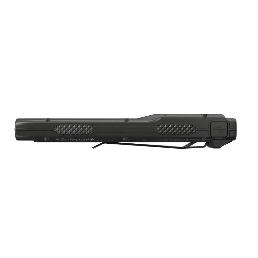 Summary Nitecore EDC25. Flashlight type: Tactical flashlight, Product colour: Black, Housing material: Aluminium. Shockproof up to: 1 m, International Protection (IP) code: IP54. Lamp type: LED, Lamps quantity: 2 lamp(s), Light output (min): 15 lm. Charging source: USB, Battery type: Built-in battery, Battery technology: Lithium-Ion (Li-Ion). Width: 31.4 mm, Depth: 136.3 mm, Height: 21.4 mm