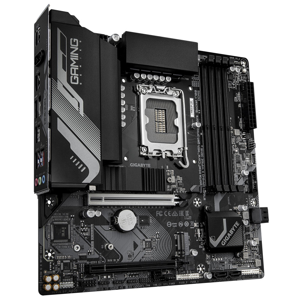 Summary GIGABYTE B760M GAMING X WIFI6E GEN5 Motherboard - Supports 14th Gen. Intel Core CPUs, 8+1+1 phases VRM, up to 5600MHz DDR5, 2xPCIe 4.0 M.2, Wi-Fi 6E, 2.5 GbE LAN, USB 3.2 Gen 1. Processor manufacturer: Intel, Processor socket: LGA 1700, Compatible processor series: Intel® Celeron®, Intel Core i3 12th Gen, Intel Core i3 13th Gen, Intel Core i3 14th Gen, Intel.... Supported memory types: DDR5-SDRAM, Maximum internal memory: 256 GB, Memory slots type: DIMM. Supported storage drive interfaces: M.2, PCI Express 4.0, SATA III, Supported storage drive types: HDD & SSD, RAID levels: 0, 1, 5, 10. Maximum resolution: 4096 x 2304 pixels. Ethernet interface type: 2.5 Gigabit Ethernet, LAN controller: Realtek RTL8125, Top Wi-Fi standard: Wi-Fi 6E (802.11ax)