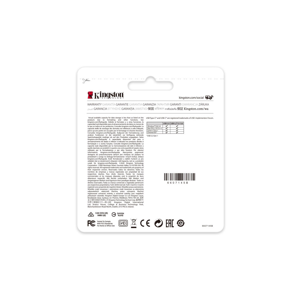 Kingston Technology DataTraveler 64GB USB-C 3.2 Gen 1 70. Capacity: 64 GB, Device interface: USB Type-C, USB version: 3.2 Gen 1 (3.1 Gen 1). Form factor: Cap. Weight: 7 g. Product colour: Black