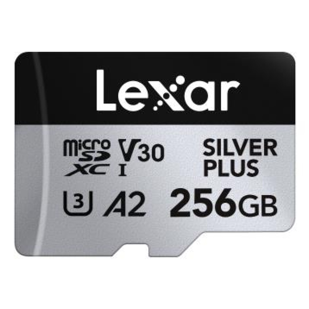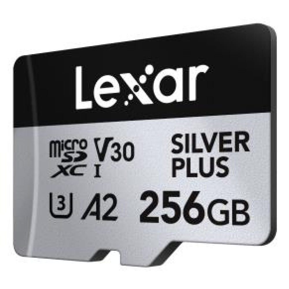 Lexar Professional SILVER PLUS. Capacity: 256 GB, Flash card type: MicroSDXC, Flash memory class: Class 3, Internal memory type: UHS-I, Read speed: 205 MB/s, Write speed: 150 MB/s, UHS Speed Class: Class 3 (U3), Video Speed Class: V30. Protection features: Impact resistant, Magnet proof, Shock resistant, Temperature proof, X-ray proof, Product colour: Black, Silver