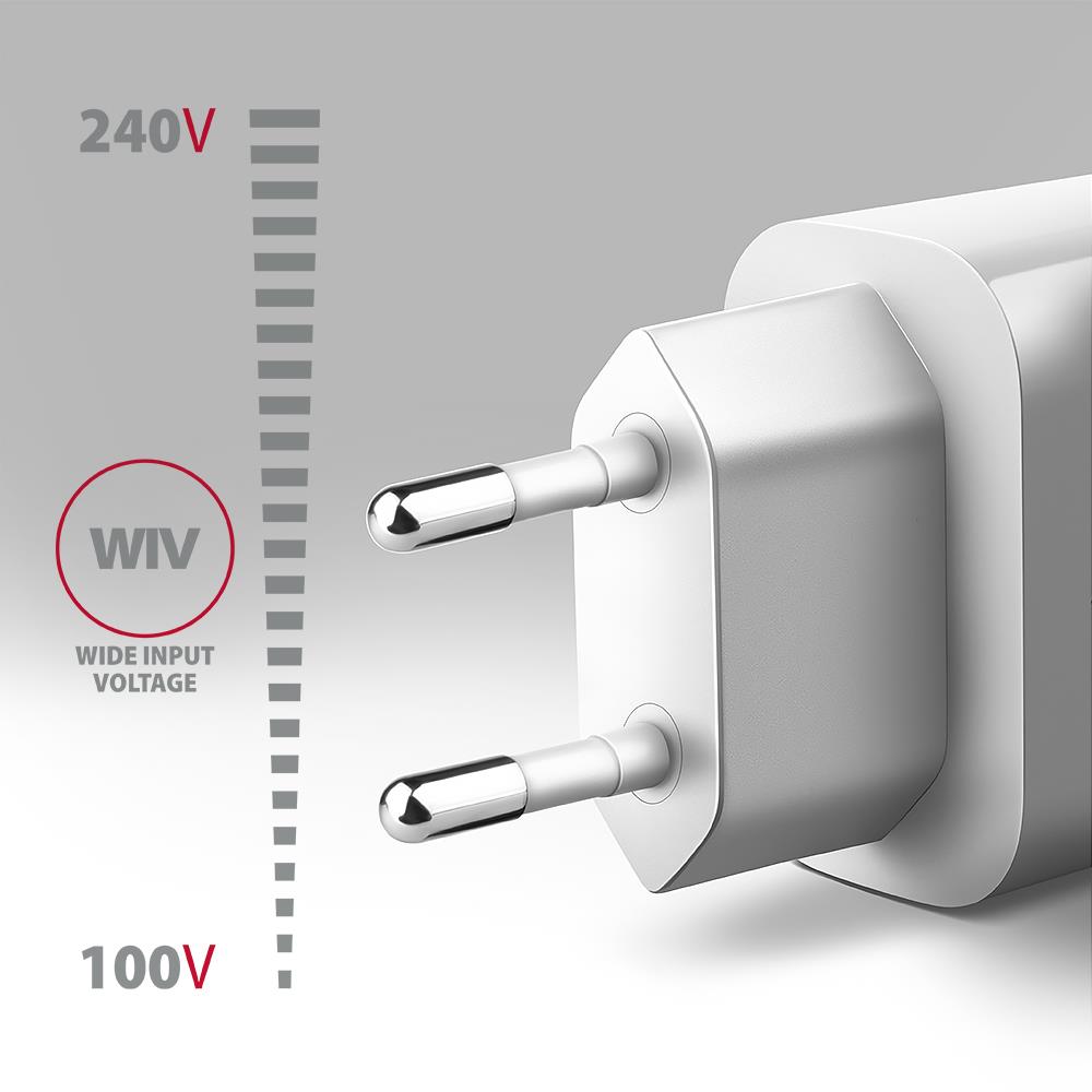 Summary Axagon ACU-QC18W QC3.0 1xOUTPUT wall charger 18W. Charger type: Indoor, Power source type: AC, Charger compatibility: Mobile phone, Smartphone, Smartwatch, Tablet, Universal. Input voltage: 100 - 240 V. USB 2.0 ports quantity: 1, Fast charging, Power protection features: Over voltage, Overheating, Overload, Short circuit, Under voltage. Product colour: White