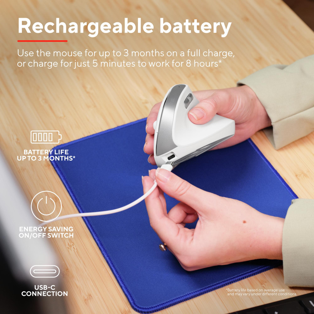 Trust Bayo II. Form factor: Right-hand, Vertical design. Movement detection technology: Optical, Device interface: RF Wireless, Movement resolution: 2400 DPI, Buttons type: Pressed buttons, Buttons quantity: 6, Scroll type: Wheel. Power source: Batteries/Cable. Product colour: White