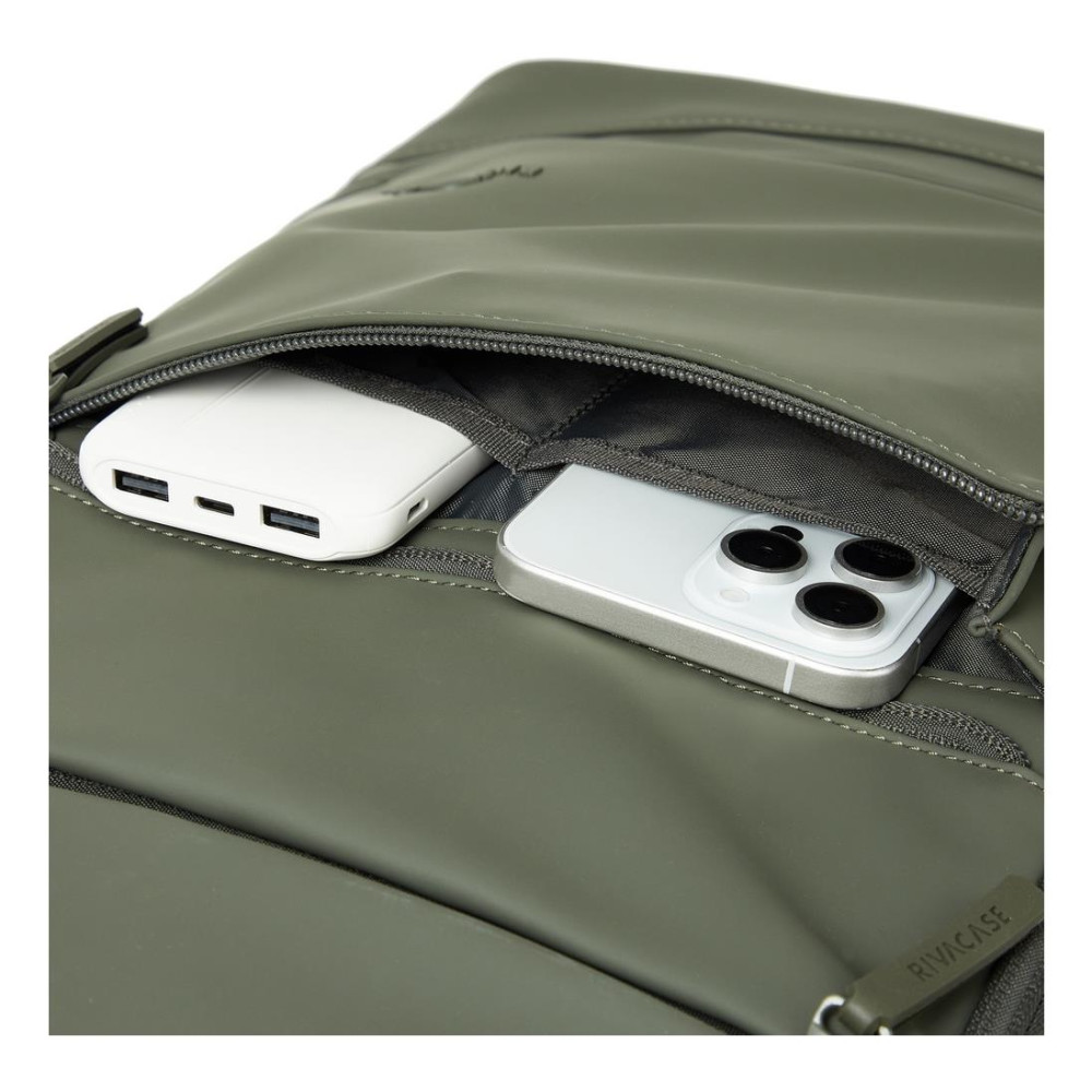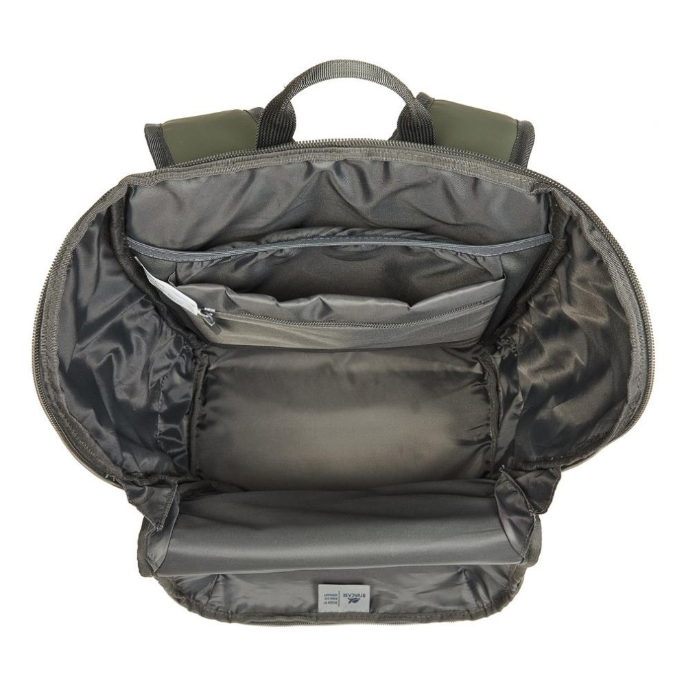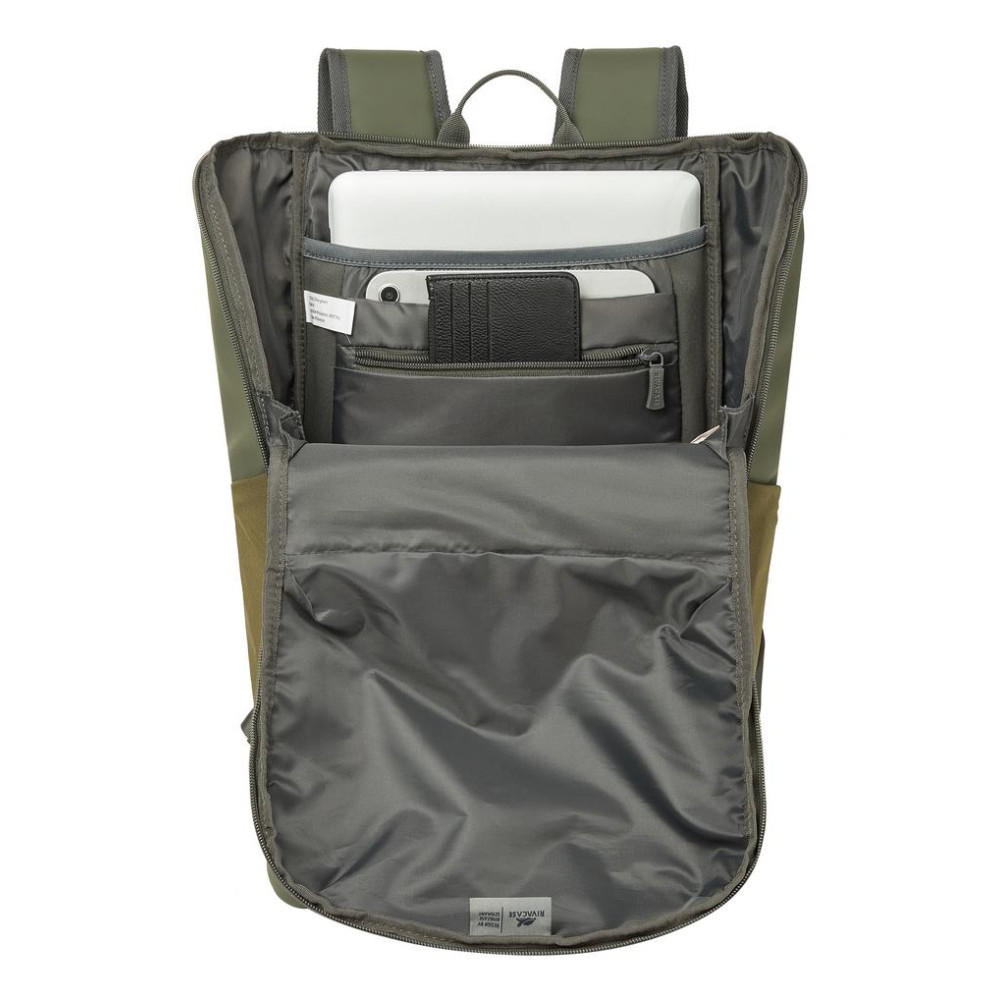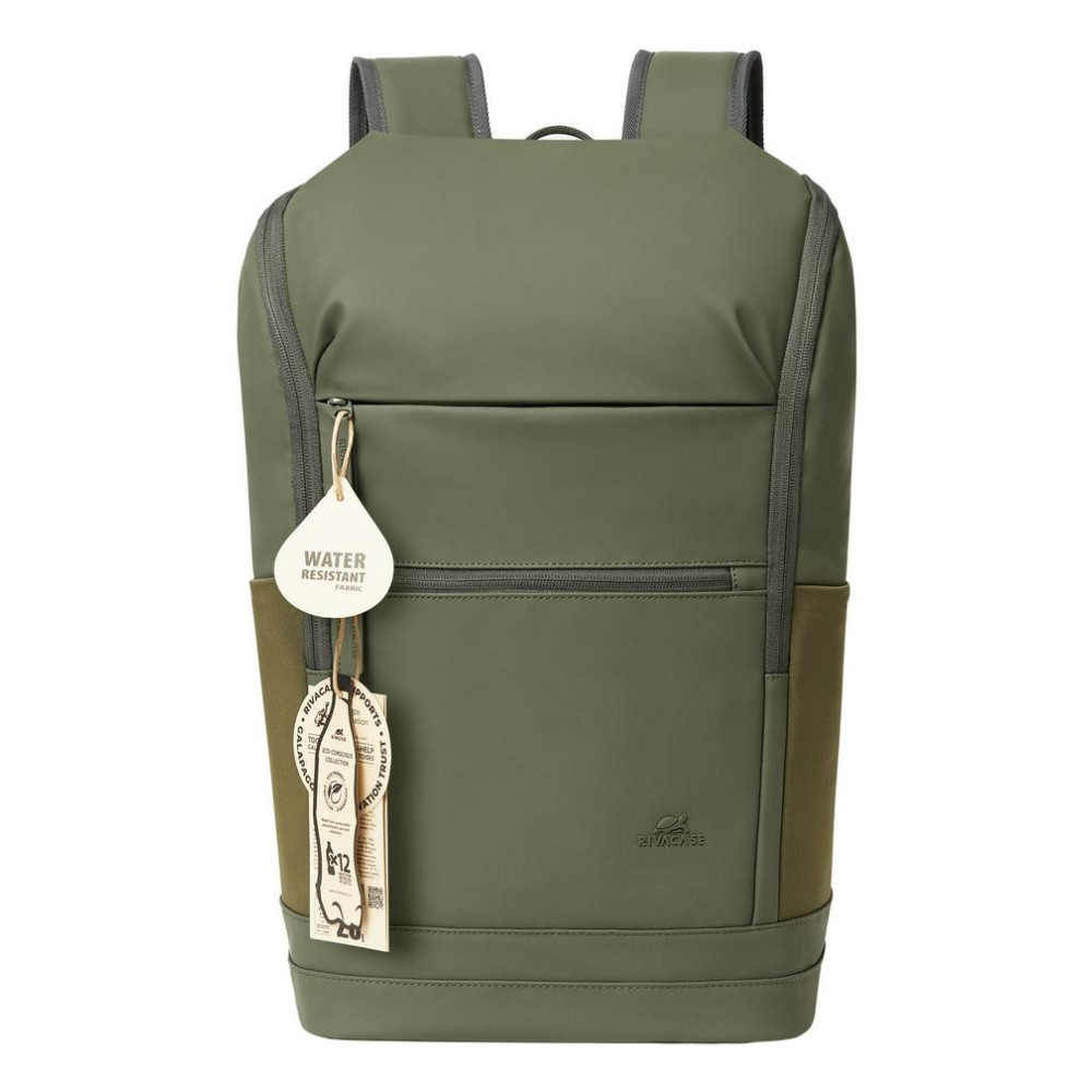 Rivacase Eden. Backpack type: Travel backpack, Product main colour: Olive, Style: Urban. Width: 270 mm, Depth: 170 mm, Height: 470 mm. Material: PU leather, Polyester, Recycled polyethylene terephthalate (rPET)
