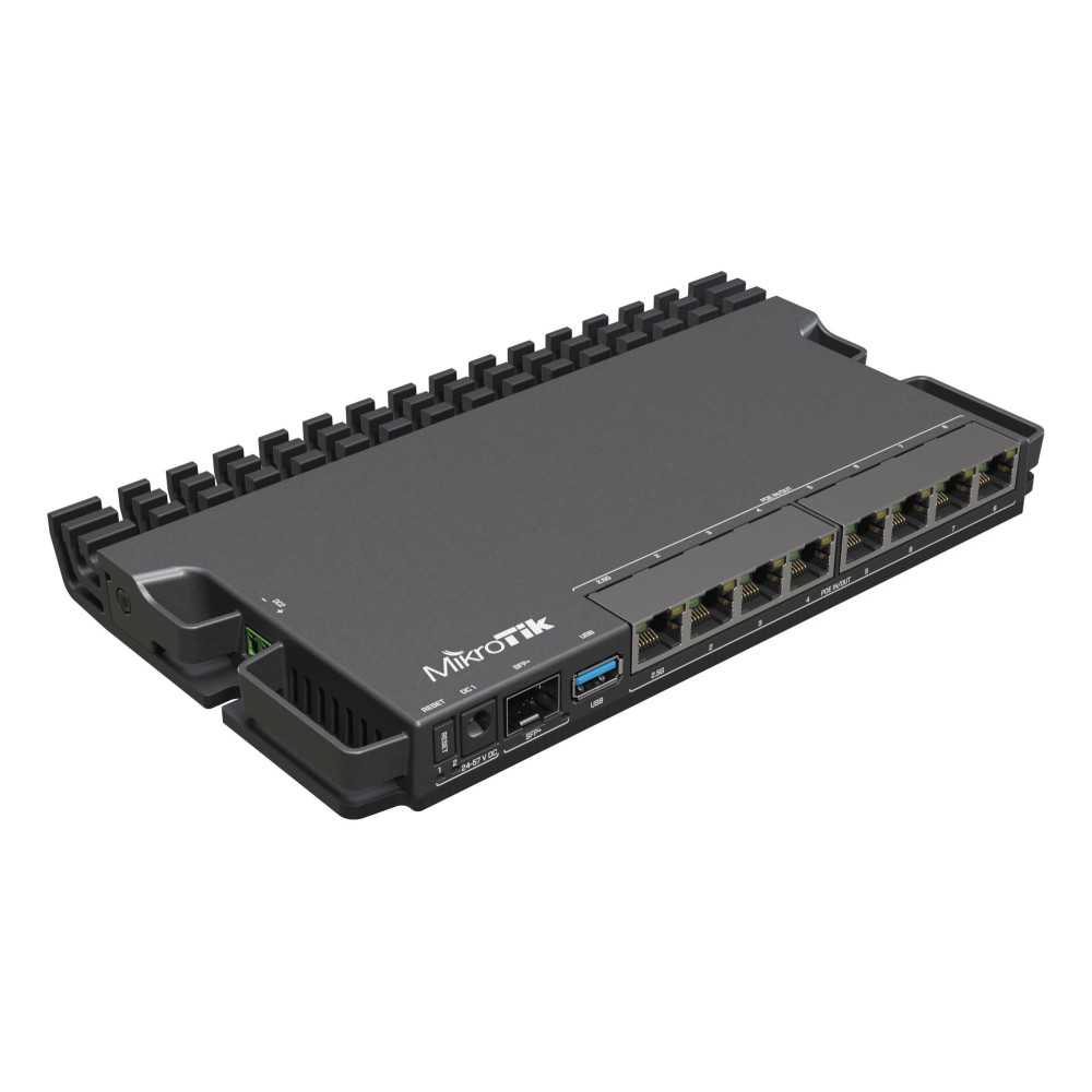 Mikrotik RB5009UG+S+IN. Networking standards: IEEE 802.3af, IEEE 802.3at, Ethernet interface type: 2.5 Gigabit Ethernet, Ethernet LAN data rates: 10,100,1000 Mbit/s. USB version: 3.2 Gen 1 (3.1 Gen 1). Compliance certificates: RoHS. Mean time between failures (MTBF): 200000 h, Certification: CE, EAC, ROHS. Product colour: Black