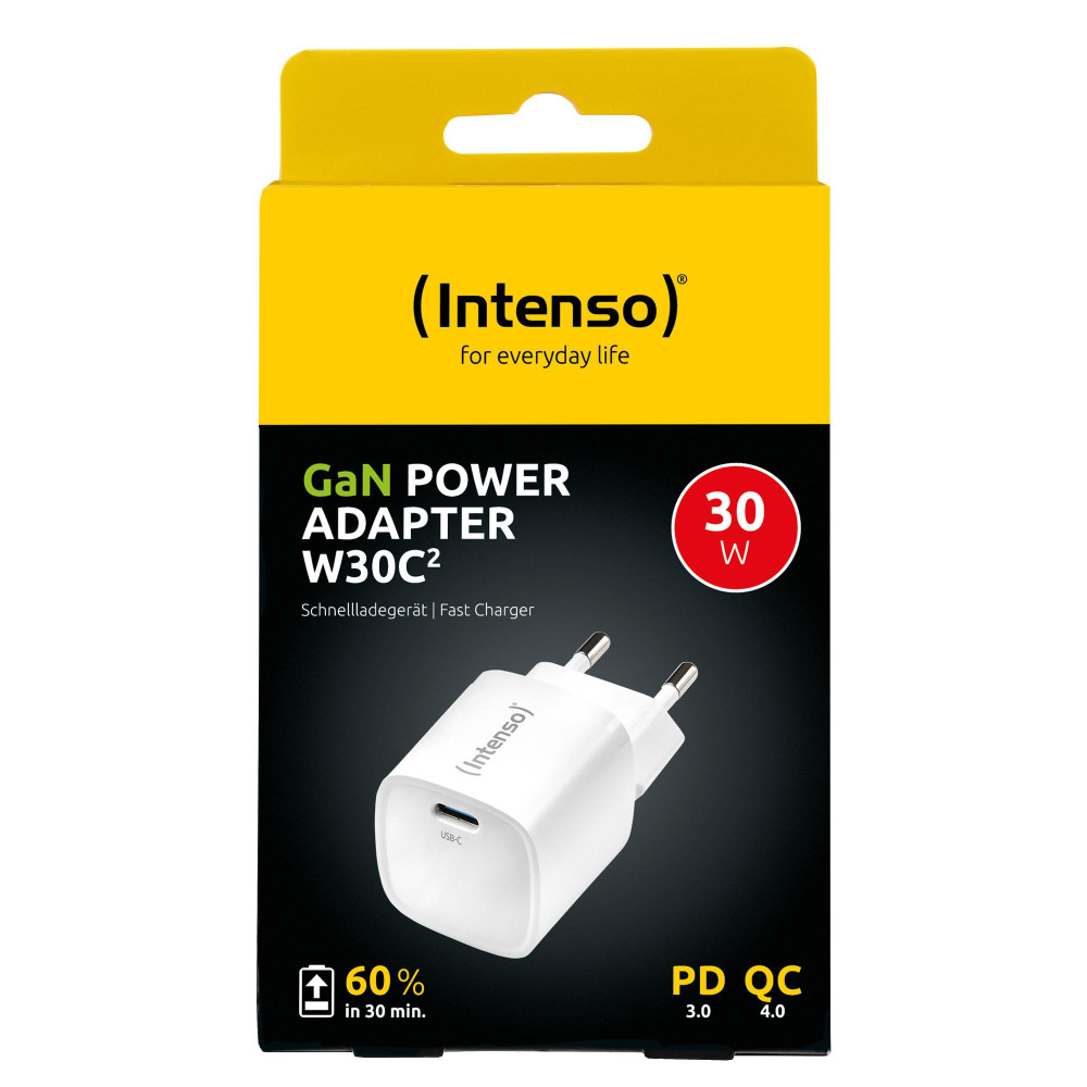 Intenso W30C² GaN. Charger type: Indoor, Power source type: AC, Charger compatibility: Universal. Input voltage: 100 - 240 V, Maximum output voltage: 20 V. USB Type-C ports quantity: 1, Fast charging. Product colour: White