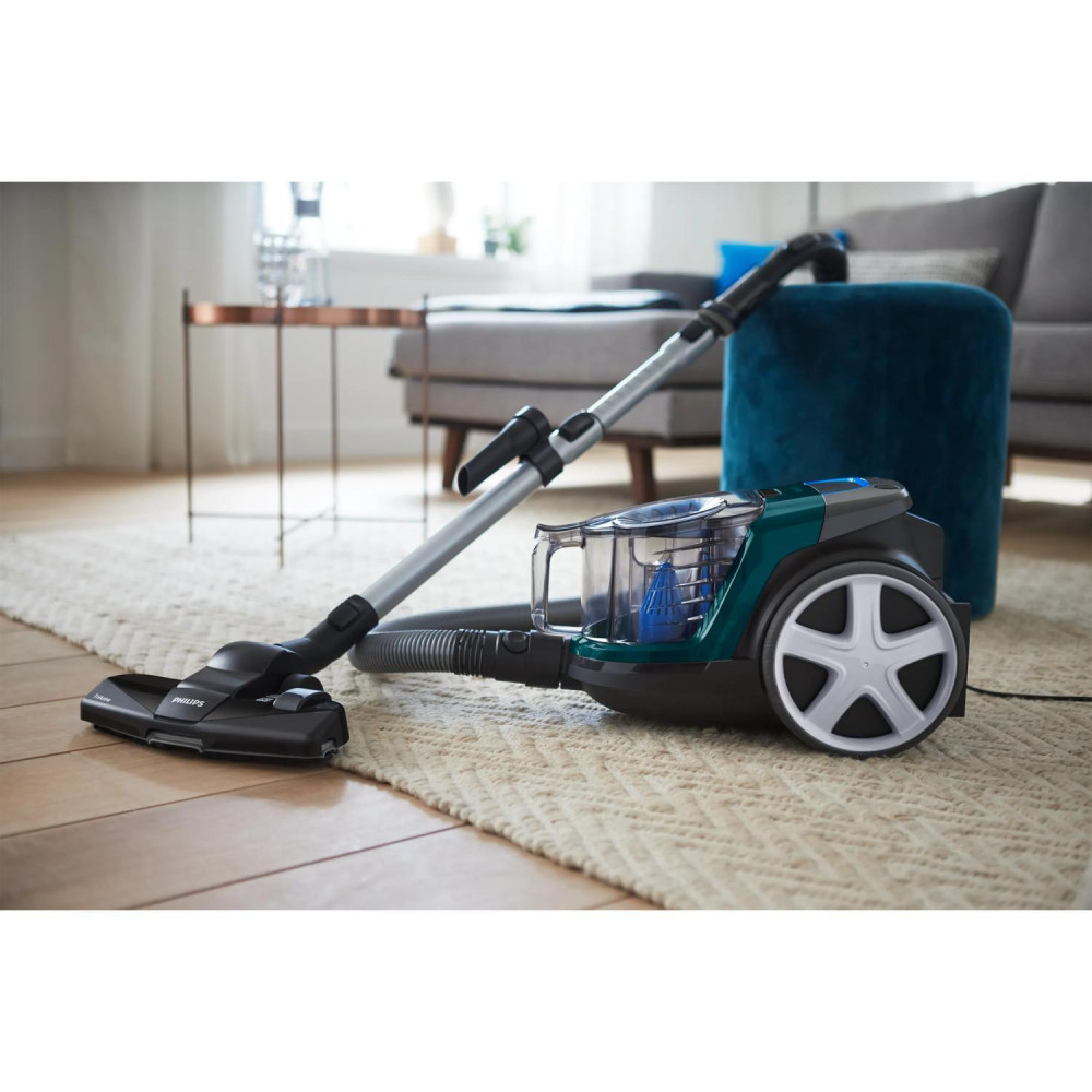 - The new Philips PowerPro Compact vacuum cleaner delivers high cleaning results, thanks to PowerCyclone and TriActive nozzle technology. The dust container is designed for a hygienic emptying. Allergy filter captures 99.90% of fine dust.