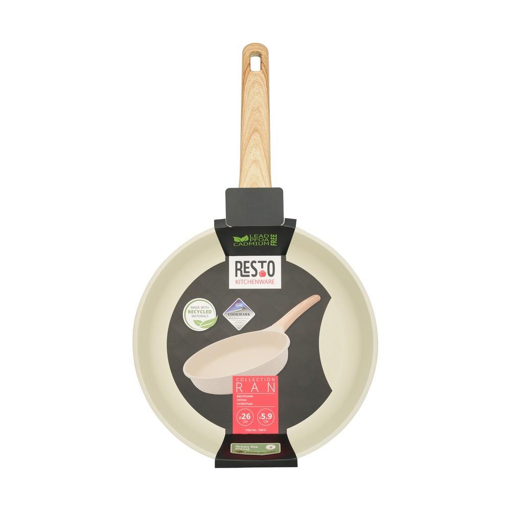 Resto Kitchenware Ran. Shape: Round, Type: All-purpose pan, Product colour: Beige, Wood. Diameter: 26 cm, Width: 260 mm, Depth: 260 mm. Quantity per pack: 1 pc(s). Doesnt contain: Cadmium, Lead, Perfluorooctanoic Acid (PFOA)