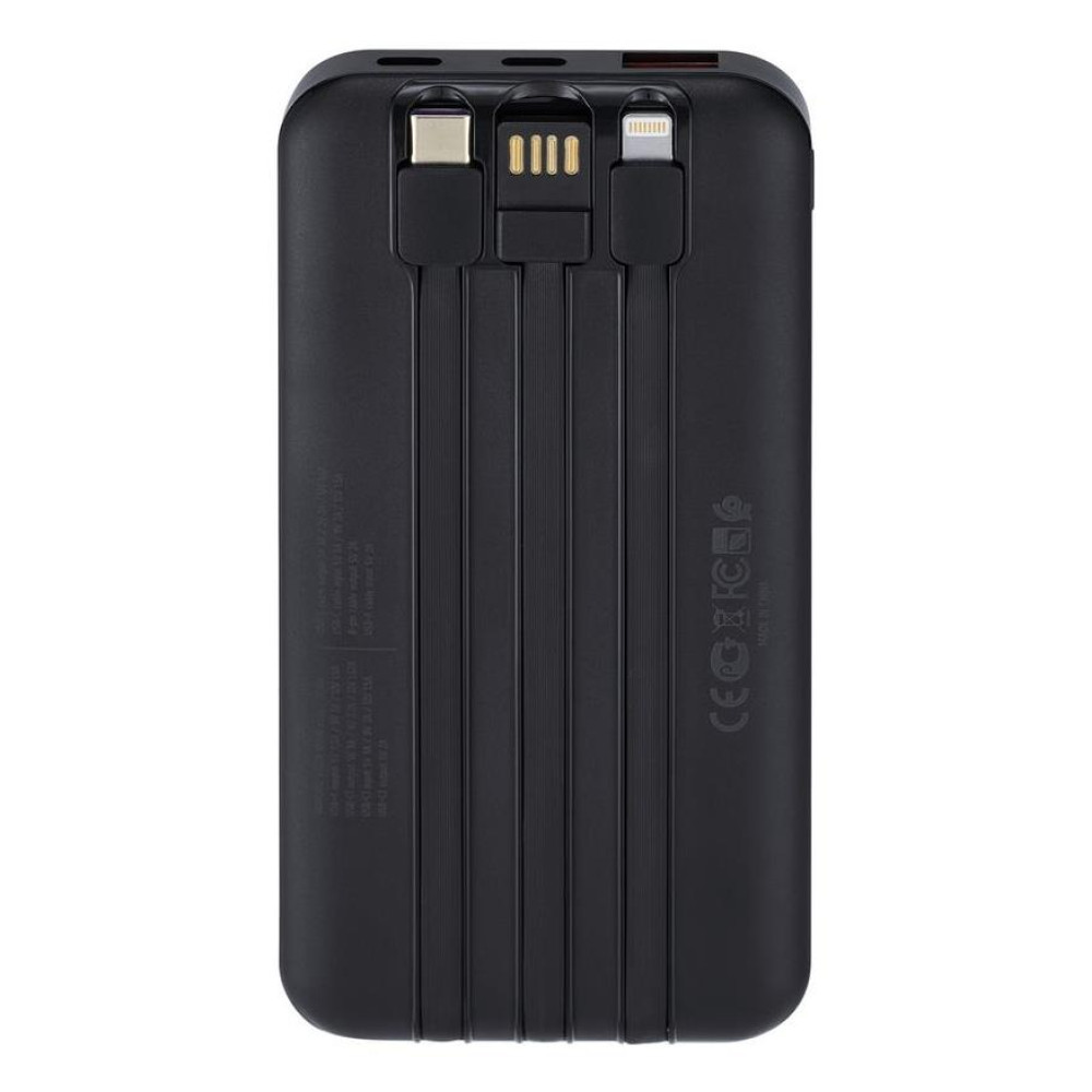 Rivacase VA2211. Емкость батареи: 10000 mAh, Технология батареи: Литий-полимерная (LiPo), Технология быстрой зарядки: Power Delivery 3.0, Quick Charge 3.0. Количество выходов USB A: 1, Количество USB портов С-типа: 2. Общая выходная мощность: 22,5 W, Ток на выходе: 3 A. Цвет товара: Белый