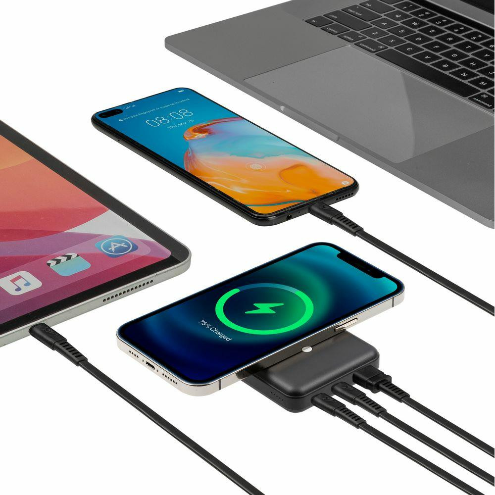 Rivacase VA2604. Емкость батареи: 10000 mAh, Технология батареи: Литий-полимерная (LiPo), Технология быстрой зарядки: Quick Charge 3.0, Напряжение батареи: 3,7 V. Количество выходов USB A: 1, Количество USB портов С-типа: 1. Беспроводная зарядка. Цвет товара: Черный