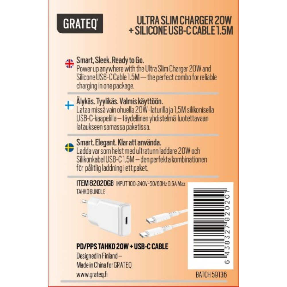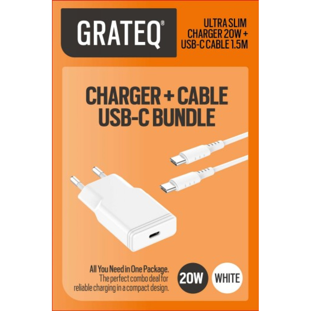 GRATEQ TAHKO CHARGER 20W + CABLE 1.5M BUNDLE WHITE