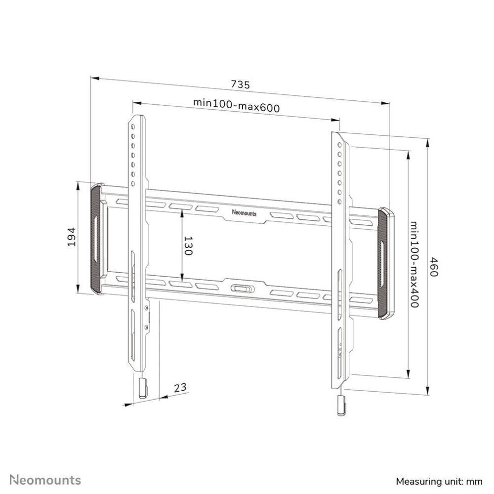Neomounts WL30-550BL16. Максимальная емкость (вес): 60 kg, Минимальная совместимость от размера экрана: 106,7 cm (42), Максимальный размер экрана: 2,18 m (86), Минимальное крепление VESA: 100 x 100 mm, Максимальное крепление VESA: 600 x 400 mm. Расстояние от стены (макс): 2,3 cm. Цвет товара: Черный