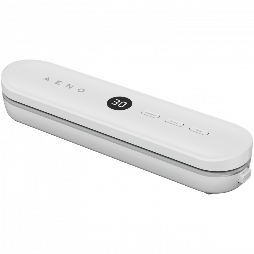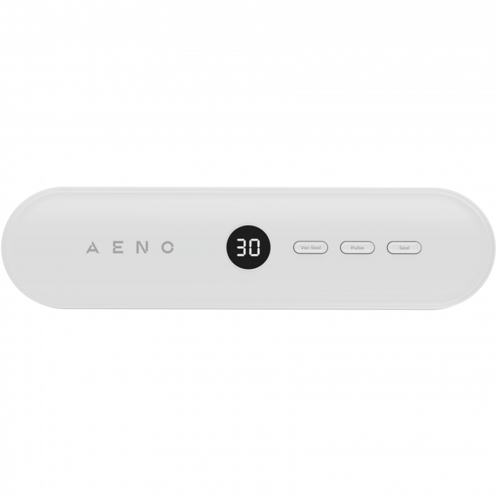 Fast sealing: 13 sec per bag, High vacuum power: up to 70 kPa, 4 modes for all needs: dry vacuum & seal, moist vacuum & seal, seal, pulse, Prolong food freshness up to 5x longer, Easy control: LED display with time indicators, Delicate food protection: quick stop button, Compatible with the AENO Sous Vide, Space-saving storage: keeps fridge and freezer organized, Keep food fresh: ideal for weekly meal prep, Organized storage: perfect for spices and dry goods, On-the-go meals: great for school & picnics, Quick marination: enhances flavor fast, No mess: built-in liquid container, Compact design: fits any kitchen, Ergonomic design with detachable power cord, Included: 5 bags (15 cm x 20 cm) & 5 bags (20 cm x 30 cm), Lightweight, Liquid container 30 ml