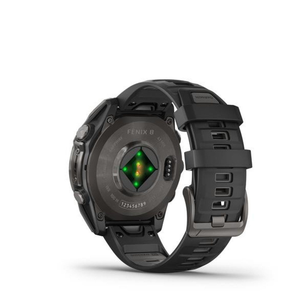 Garmin fenix 8. Display diagonal: 3.56 cm (1.4), Display technology: AMOLED, Display resolution: 454 x 454 pixels, Touchscreen. Flash memory: 32 GB. Wi-Fi. GPS (satellite). Waterproof up to: 40 m, Band material: Silicone, Band colour: Black, Band size: One Size