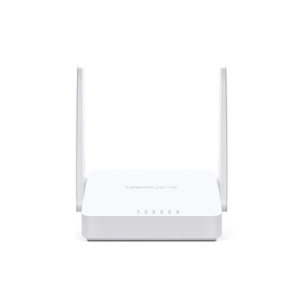Mercusys 300Mbps Wireless N Router. Wi-Fi band: Single-band (2.4 GHz), Top Wi-Fi standard: Wi-Fi 4 (802.11n), WLAN data transfer rate (max): 300 Mbit/s. Ethernet LAN interface type: Fast Ethernet, Ethernet LAN data rates: 10,100 Mbit/s, Networking standards: IEEE 802.11b, IEEE 802.11g, IEEE 802.11n. Security algorithms: WPA-PSK, WPA2-PSK. Supported network protocols: IPv4. Product type: Tabletop router, Product colour: White