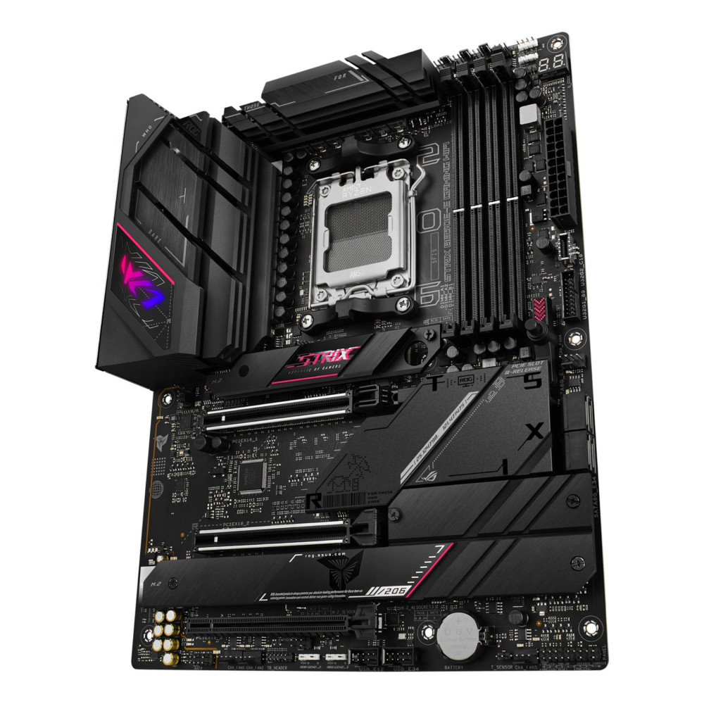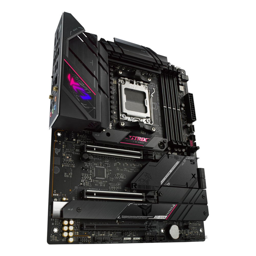 ASUS ROG STRIX B650E-E GAMING WIFI. Processor manufacturer: AMD, Processor socket: Socket AM5, Compatible processor series: AMD Ryzen 7000 Series. Supported memory types: DDR5-SDRAM, Maximum internal memory: 128 GB, Memory slots type: DIMM. Supported storage drive interfaces: M.2, SATA III, Supported storage drive types: HDD & SSD, RAID levels: 0, 1, 10. Ethernet interface type: 2.5 Gigabit Ethernet, Top Wi-Fi standard: Wi-Fi 6E (802.11ax), Wi-Fi standards: 802.11a, 802.11b, 802.11g, Wi-Fi 4 (802.11n), Wi-Fi 5 (802.11ac), Wi-Fi 6 (802.11ax), Wi-Fi 6E.... Component for: PC, Motherboard form factor: ATX, Motherboard chipset family: AMD