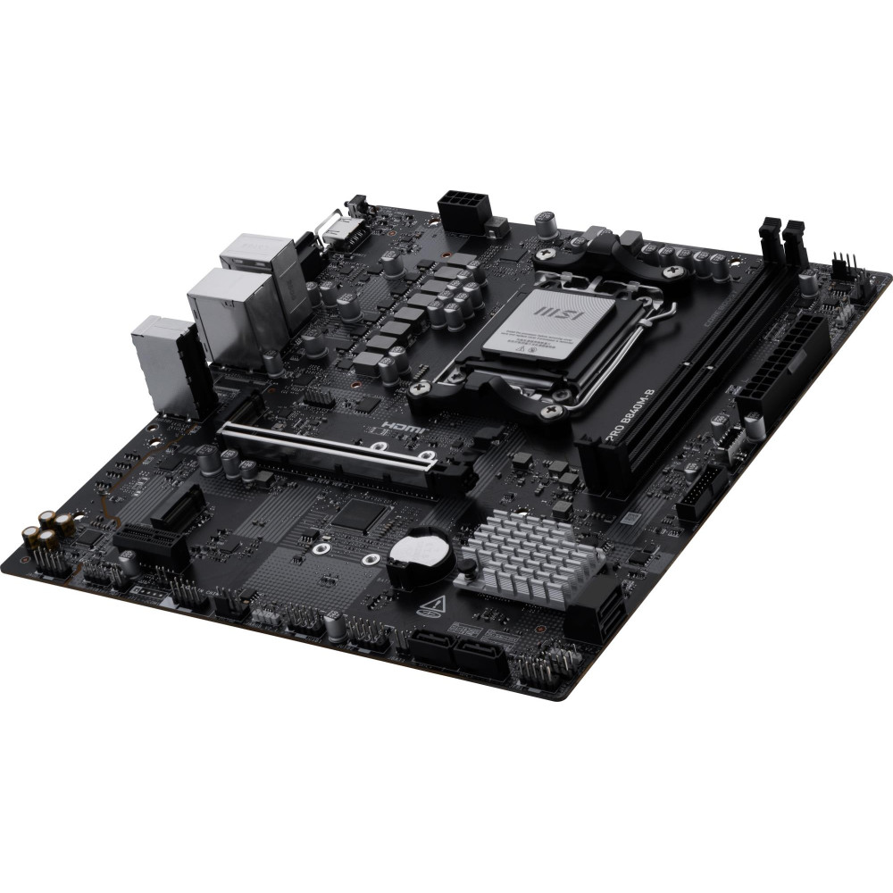 MSI PRO B840M-B. Processor manufacturer: AMD, Processor socket: Socket AM5, Compatible processor series: AMD Ryzen 7000 Series, AMD Ryzen 8000 Series, AMD Ryzen 9000 Series. Supported memory types: DDR5-SDRAM, Maximum internal memory: 128 GB, Memory slots type: DIMM. Supported storage drive interfaces: M.2, Micro SATA III, Supported storage drive types: HDD & SSD, RAID levels: 0, 1, 10. Ethernet interface type: 2.5 Gigabit Ethernet, LAN controller: Realtek RTL8125D. Component for: PC, Motherboard form factor: micro ATX, Motherboard chipset family: AMD