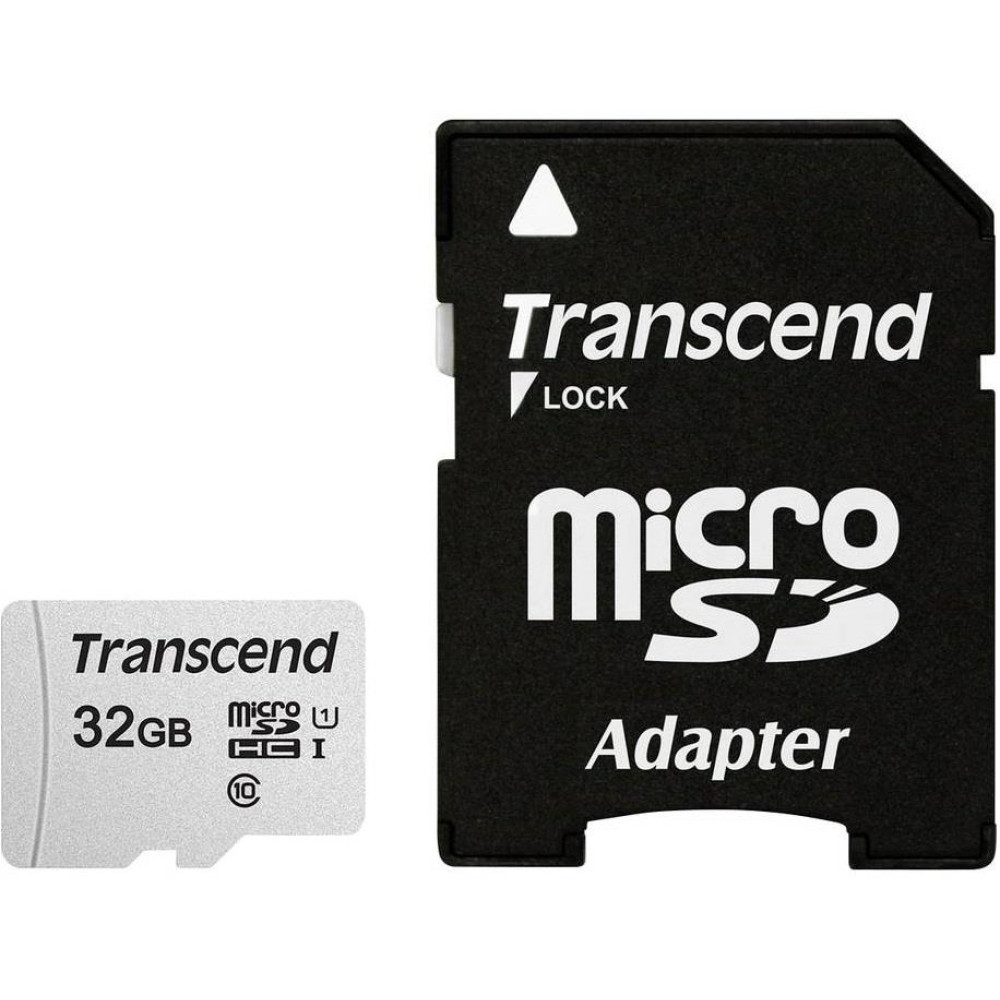 Long Description Transcend microSD Card SDHC 300S 32GB with Adapter. Capacity: 32 GB, Flash card type: MicroSDHC, Flash memory class: Class 10, Internal memory type: NAND, Read speed: 95 MB/s, Write speed: 25 MB/s, UHS Speed Class: Class 1 (U1). Protection features: Splash proof, Static proof, Temperature proof, Waterproof, X-ray proof, Product colour: Silver
