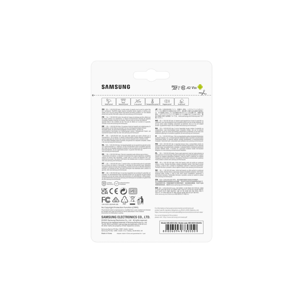 Samsung MB-MD512SA/EU. Capacity: 512 GB, Flash card type: MicroSDXC, Flash memory class: Class 10, Internal memory type: UHS-I, Read speed: 180 MB/s, Write speed: 130 MB/s, UHS Speed Class: Class 3 (U3), Video Speed Class: V30. Protection features: Heat resistant, Shock resistant, Magnet proof, Water resistant, X-ray proof, Product colour: Navy