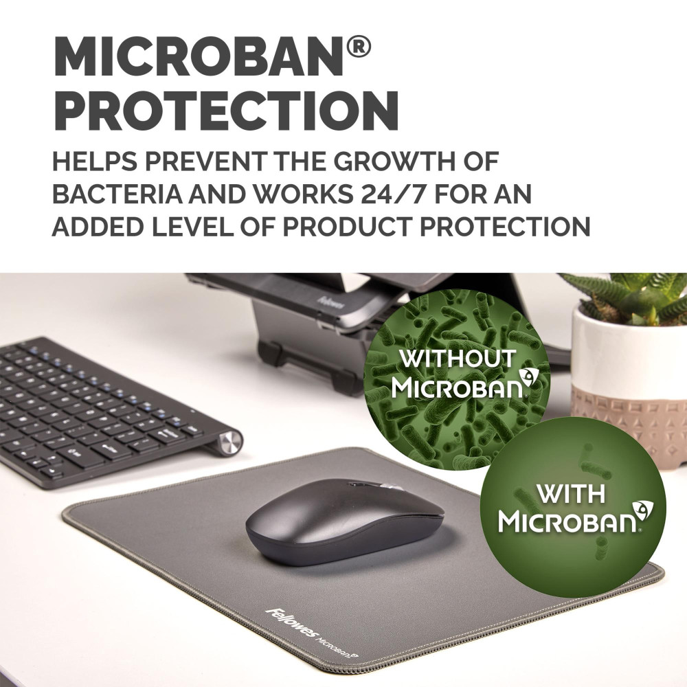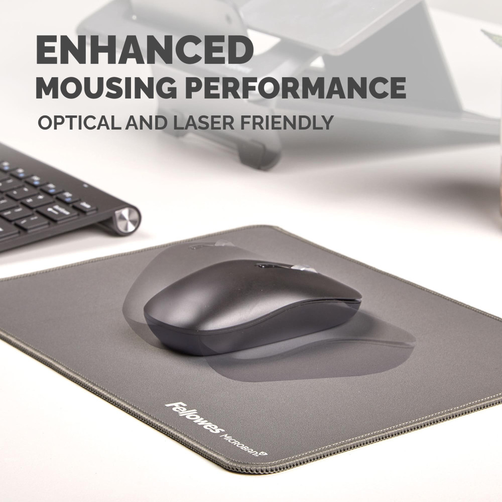 Fellowes Breyta XL Mouse Mat with Non-Slip Base XL Mouse Pad with Antibacterial Protection Grey. Width: 280 mm, Depth: 210 mm. Product colour: Grey, Surface coloration: Monochromatic, Non-slip base