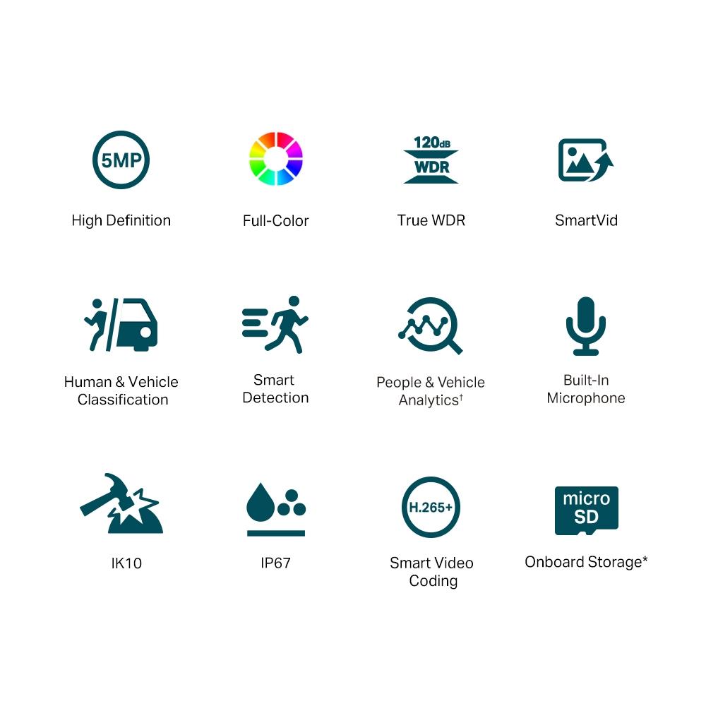 TP-Link VIGI C250. Тип: IP камера видеонаблюдения, Поддерживаемое размещение: В помещении и на открытом воздухе, Технология подключения: Проводная. Тип крепления: Потолок, Цвет товара: Белый, Черный, Формат: Dome. Минимальное освещение: 0,005 lx, Угол обзора: 128°, Угол обзора объектива по горизонтали: 109°. Тип сенсора: CMOS, Размер оптического сенсора: 25,4 / 2,7 mm (1 / 2.7). Дистанция обнаружения: 64 m, Дистанция наблюдения: 27 m, Дистанция распознавания: 13 m