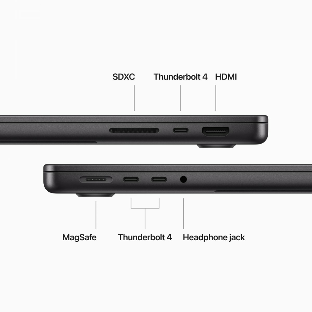 Support native DisplayPort output over USB‑C , High‑fidelity six‑speaker system with force‑cancelling woofers , Wide stereo sound , Studio‑quality three-mic array with high signal-to-noise ratio and directional beamforming , Support Thunderbolt 4 digital video output , Hardware-accelerated H.264, HEVC, ProRes, and ProRes RAW , Video decode engine , Video encode engine , ProRes encode and decode engine , Spatial audio with dynamic head tracking when using AirPods (3rd generation), AirPods Pro, and AirPods Max , 3.5mm headphone jack with advanced support for high-impedance headphones , HDMI port supports multi-channel audio output , Supported formats include HEVC, H.264, and ProRes , HDR with Dolby Vision, HDR10, and HLG , Supported formats include AAC, MP3, Apple Lossless, FLAC, Dolby Digital, Dolby Digital Plus, and Dolby Atmos , Support for Spatial Audio when playing music or video with Dolby Atmos on built-in speakers , HDMI digital video output , Simultaneously supports full native resolution on the built-in display at 1 billion colors , Up to two displays: One display with up to 6K resolution at 60Hz over Thunderbolt and one display with up to 4K resolution at 144Hz over HDMI , One display with up to 8K resolution at 60Hz or 4K resolution at 240Hz over HDMI , Support for one display with up to 8K resolution at 60Hz or 4K resolution at 240Hz , Hardware-accelerated ray tracing , AV1 decode , Advanced image signal processor with computational video