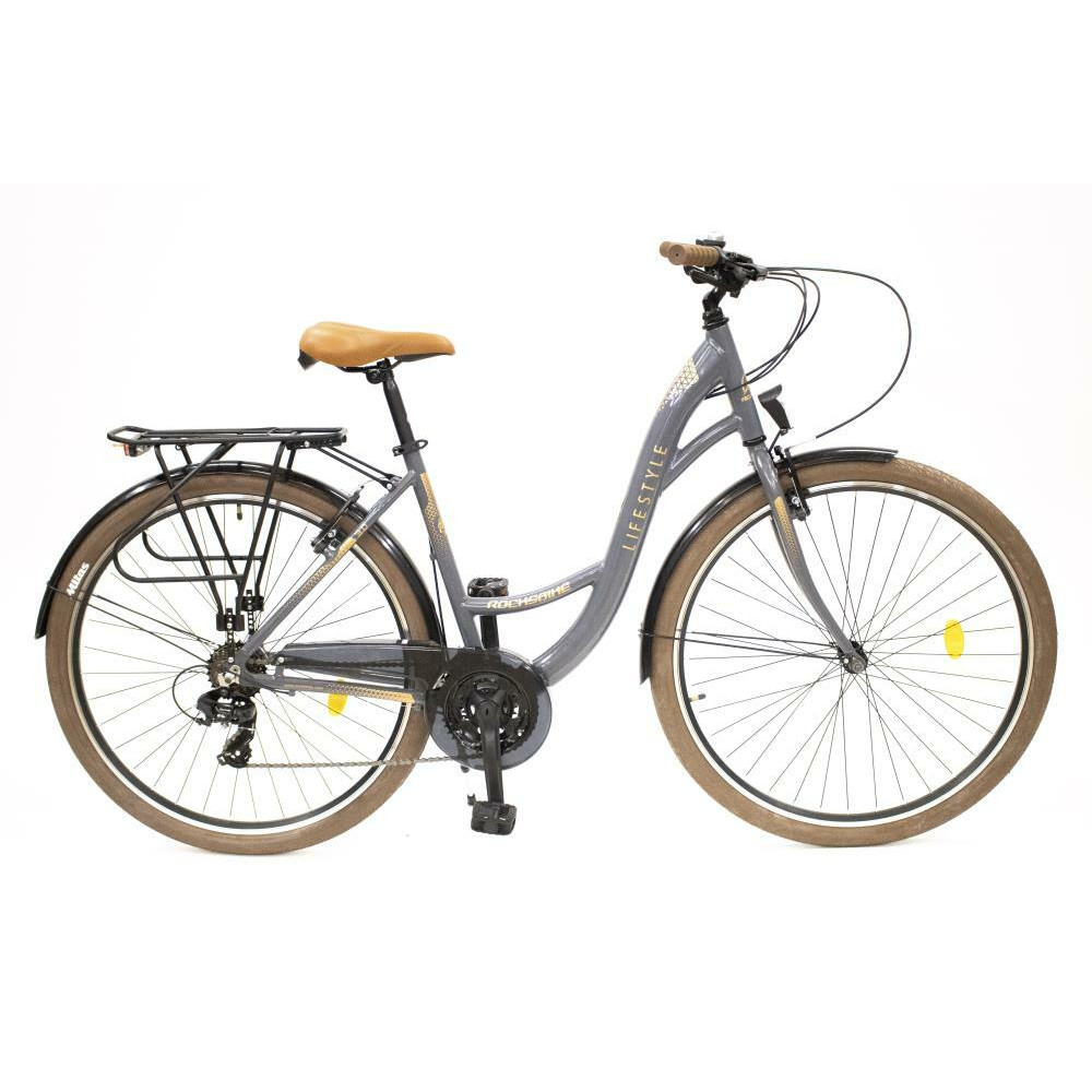 • Rocksbike Lifestyle 3.0, Adults, CTB, Wheel size 28, Number of speeds 21, Frame Alloy, Bicycle seat Steel, Brakes Aluminium V-shaped, Front gears 3, Rear gears 7, Rear derailleur SHIMANO RD-TY300 TOURNEY, Headlight/Backlight, Black / Brown, Weight 16.12 kg