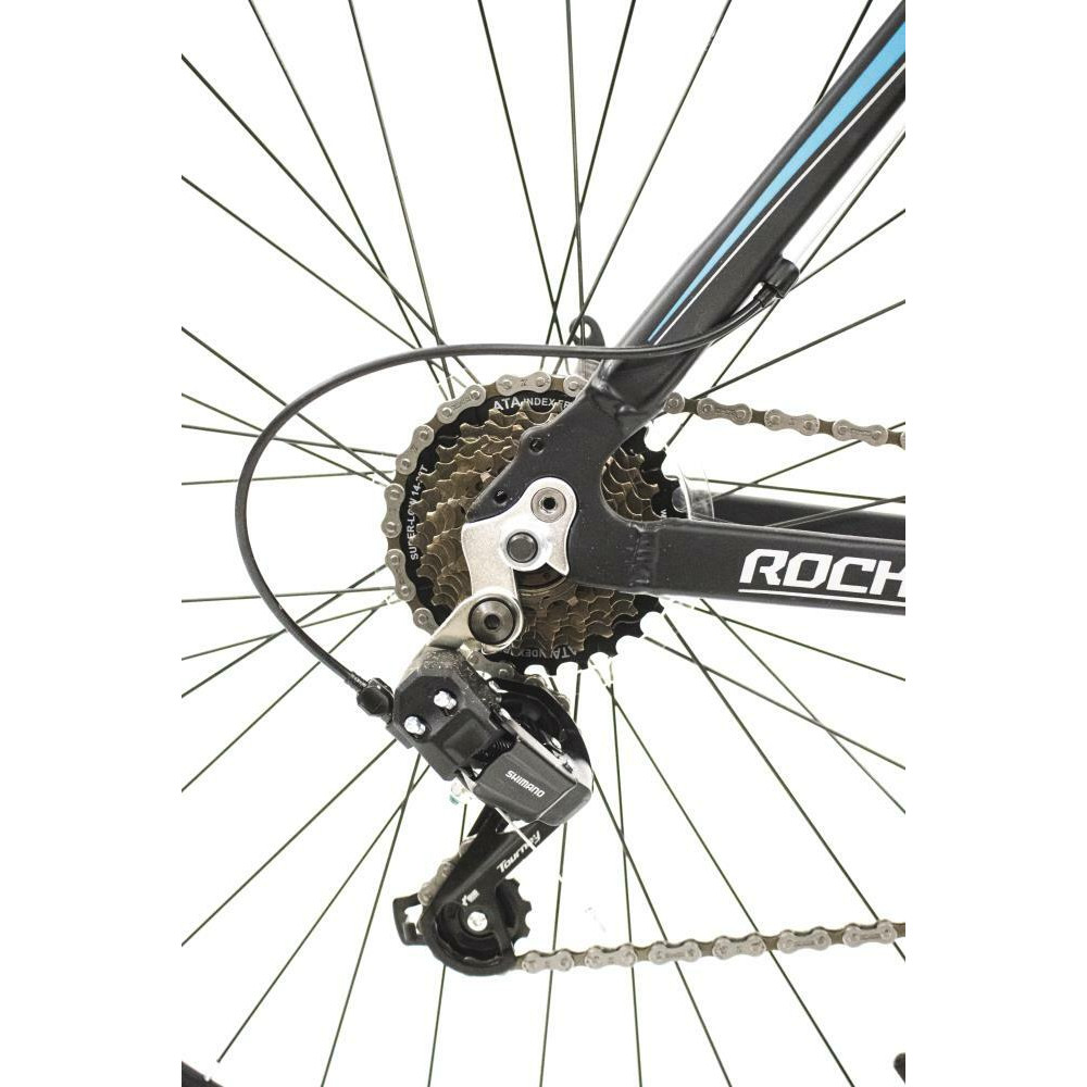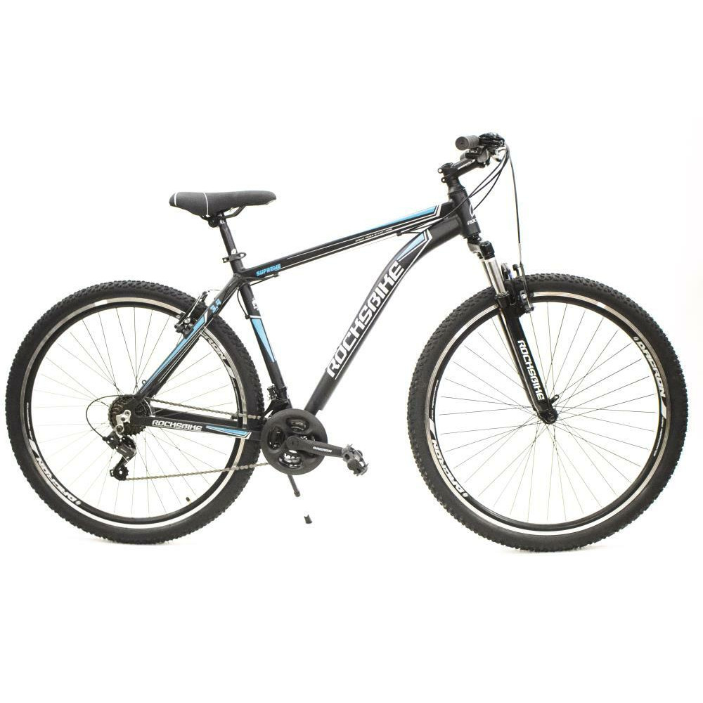 - Rocksbike Supreme 3.4, Adults, MTB, Wheel size 29, Number of speeds 21, Frame Alloy, Bicycle seat Dacron XML 38.1, Brakes Aluminium V-shaped, Front gears 3, Rear gears 7, Rear derailleur Shimano RD-TY200 Tourney, Black / Blue, Weight 15.5 kg