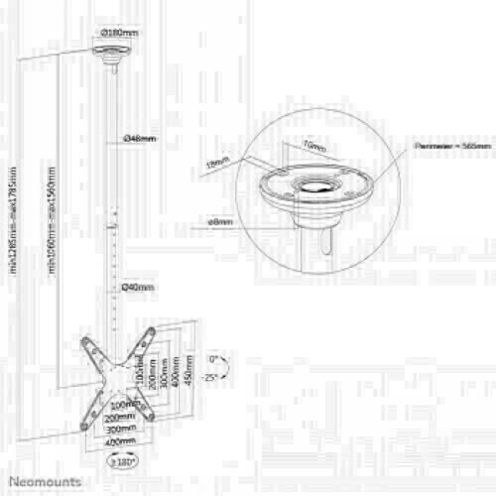 Neomounts FPMA-C340BLACK Monitor/TV mount ceiling 1 screen - 32-75" - max 50 kg - VESA 100x100-400x400 - h 106-156 cm - black